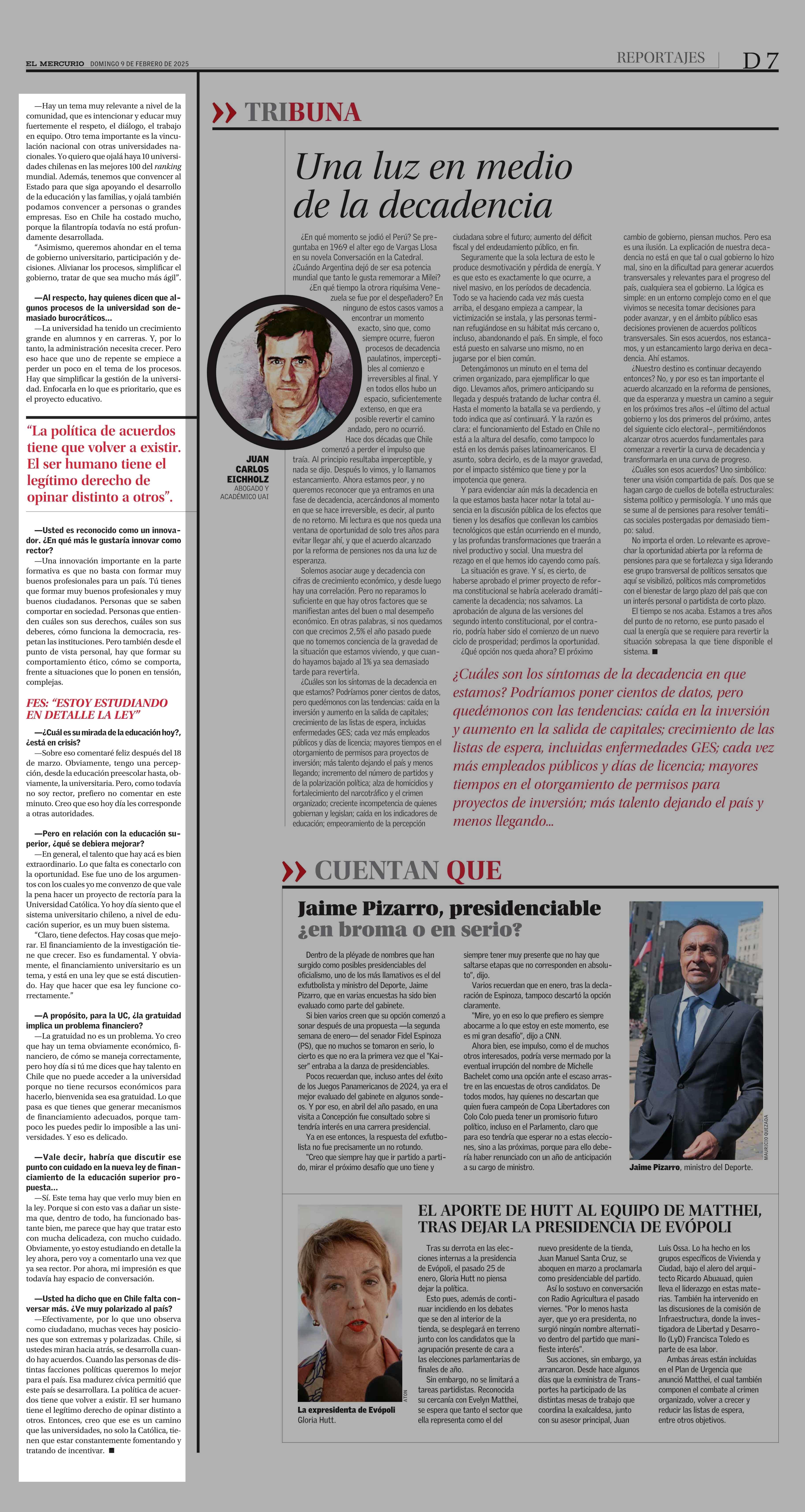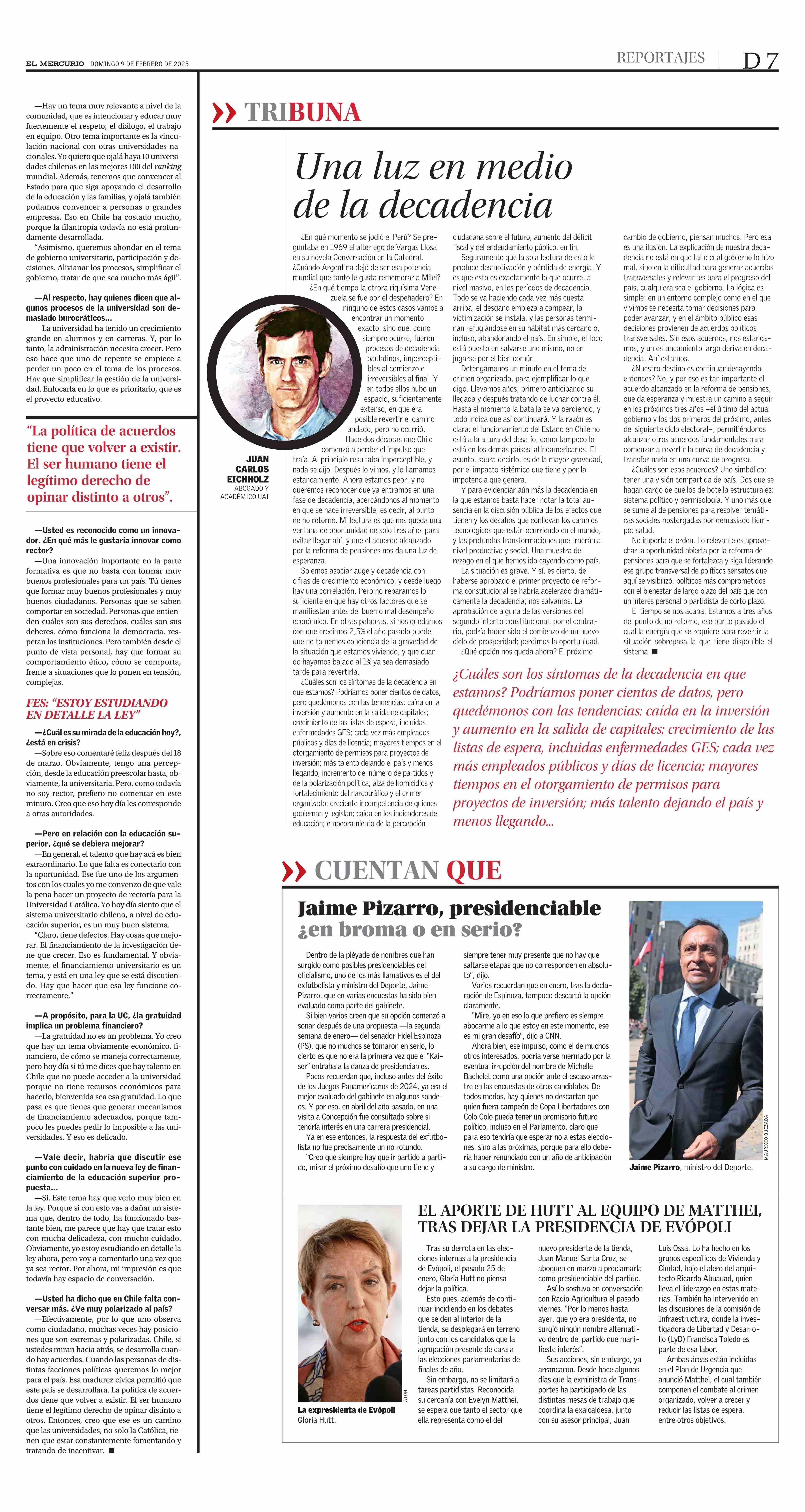 “La PUC tiene que tener CIENTOS DE VOCES EN EL DEBATE PÚBLICO” 09-02-2025 El Mercurio |