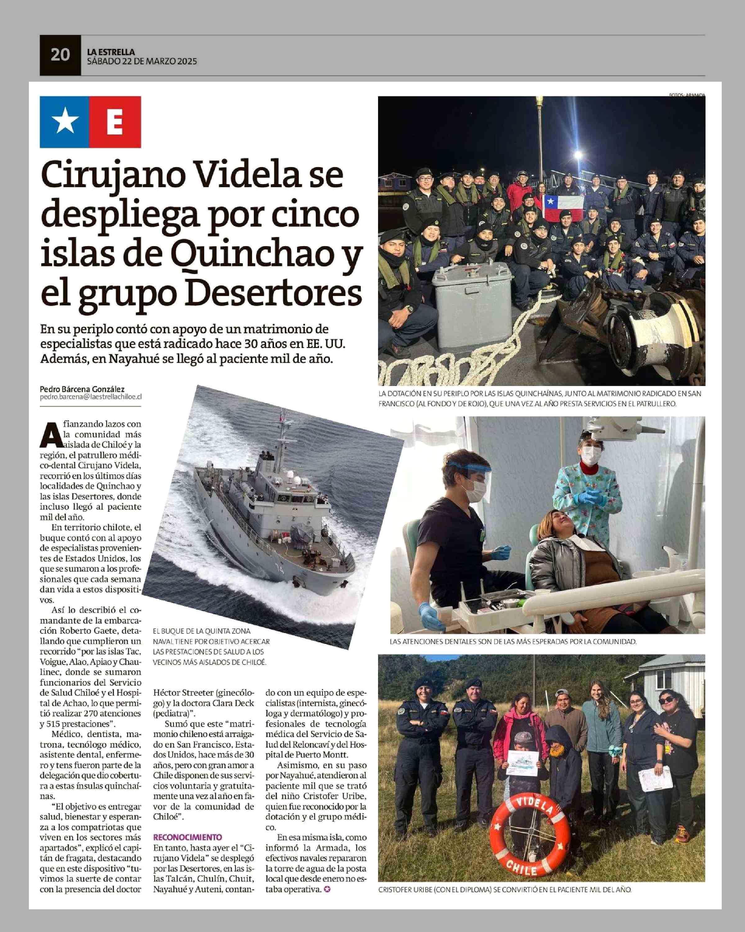 Cirujano Videla se despliega por cinco islas de Ouinchao y el grupo Desertores 22-03-2025 La Estrella de Chiloé |
