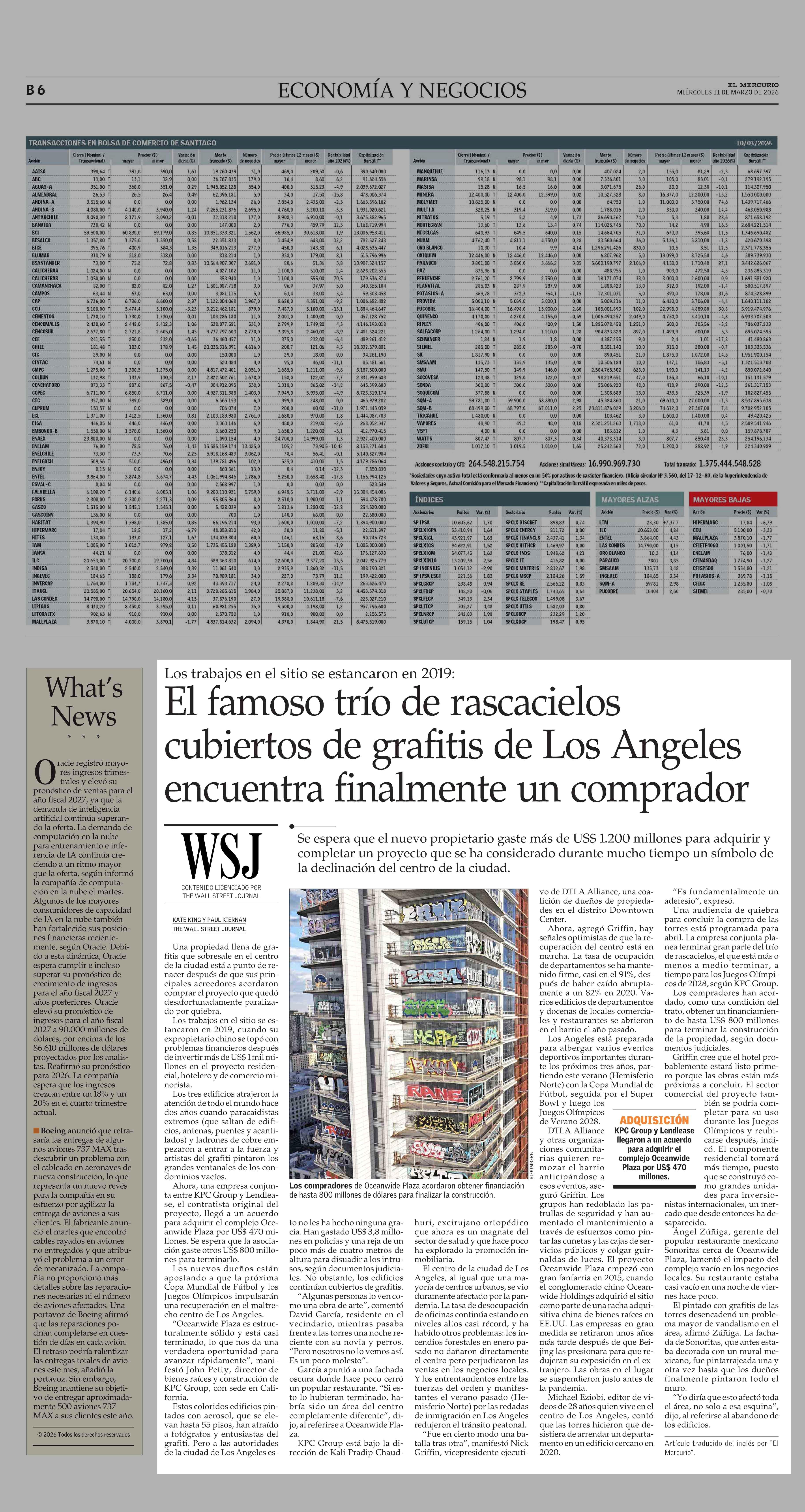 El famoso trío de rascacielos cubiertos de grafitis de Los Angeles encuentra finalmente un comprador 11-03-2026 El Mercurio |