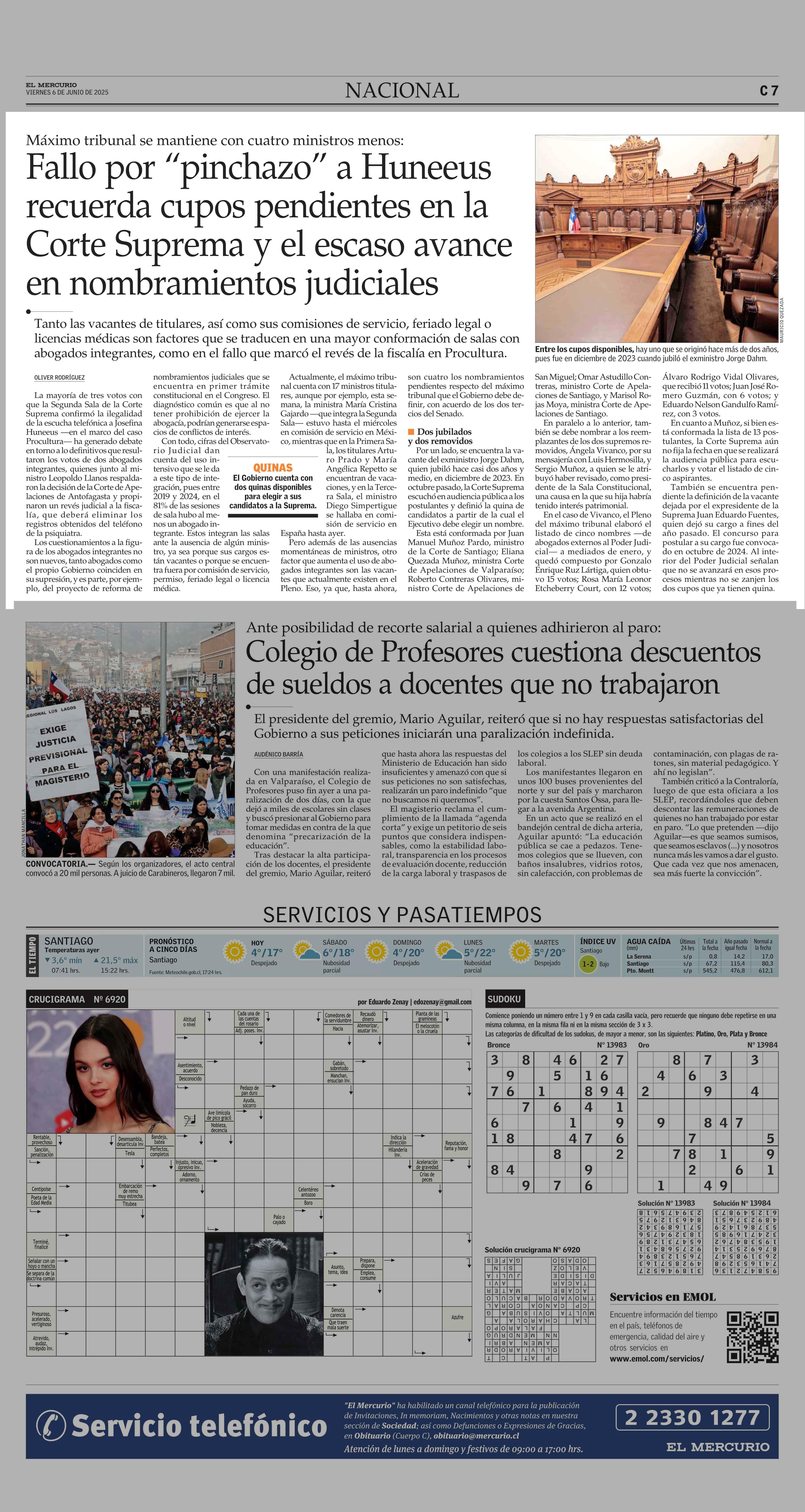 Fallo por “pinchazo” a Huneeus recuerda cupos pendientes en la Corte Suprema y el escaso avance en nombramientos judiciales 06-06-2025 El Mercurio |