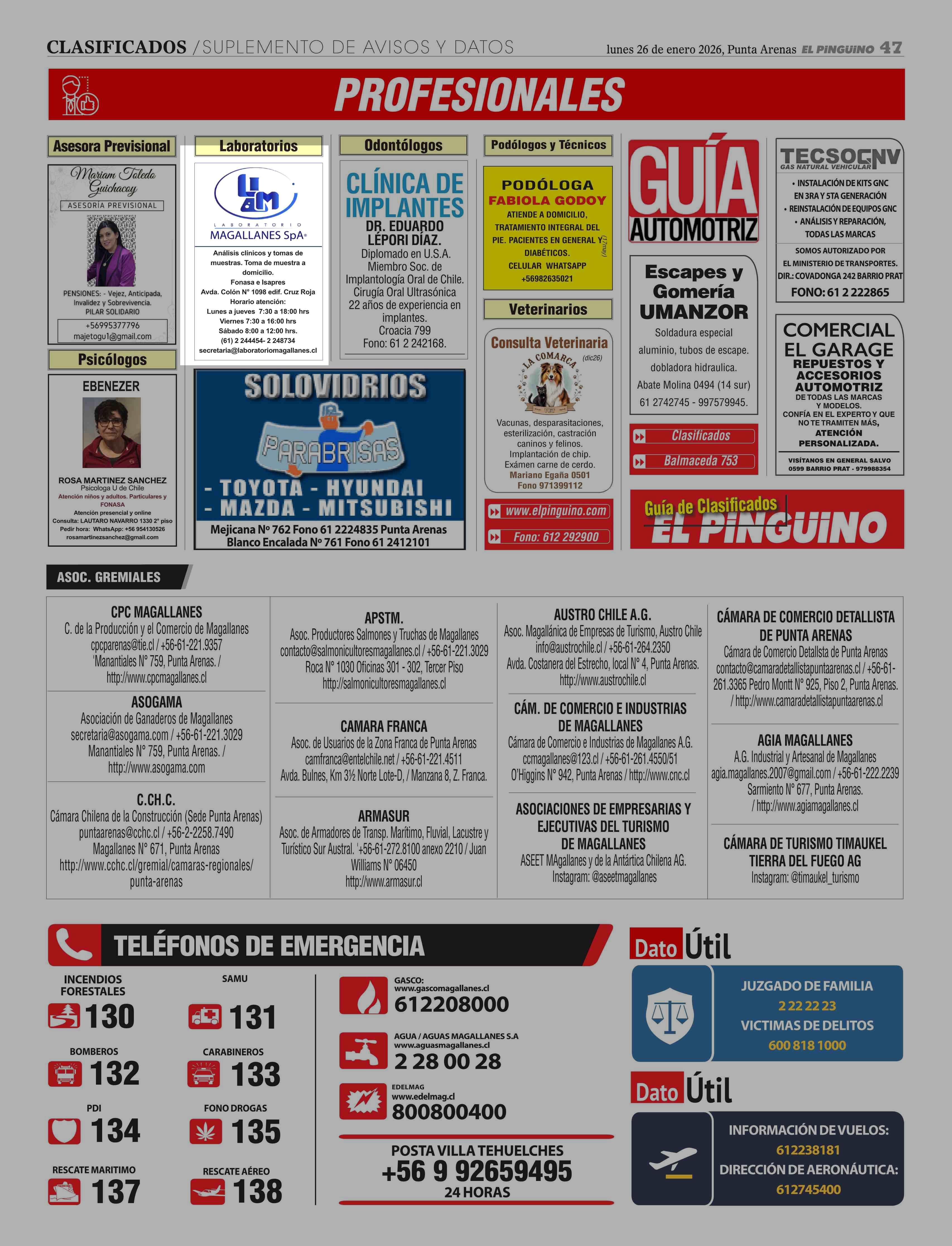 | Fecha: | 26-01-2026 | Sector: | Noticia general | Región: | Región de Magallanes y de la Antártica Chilena |