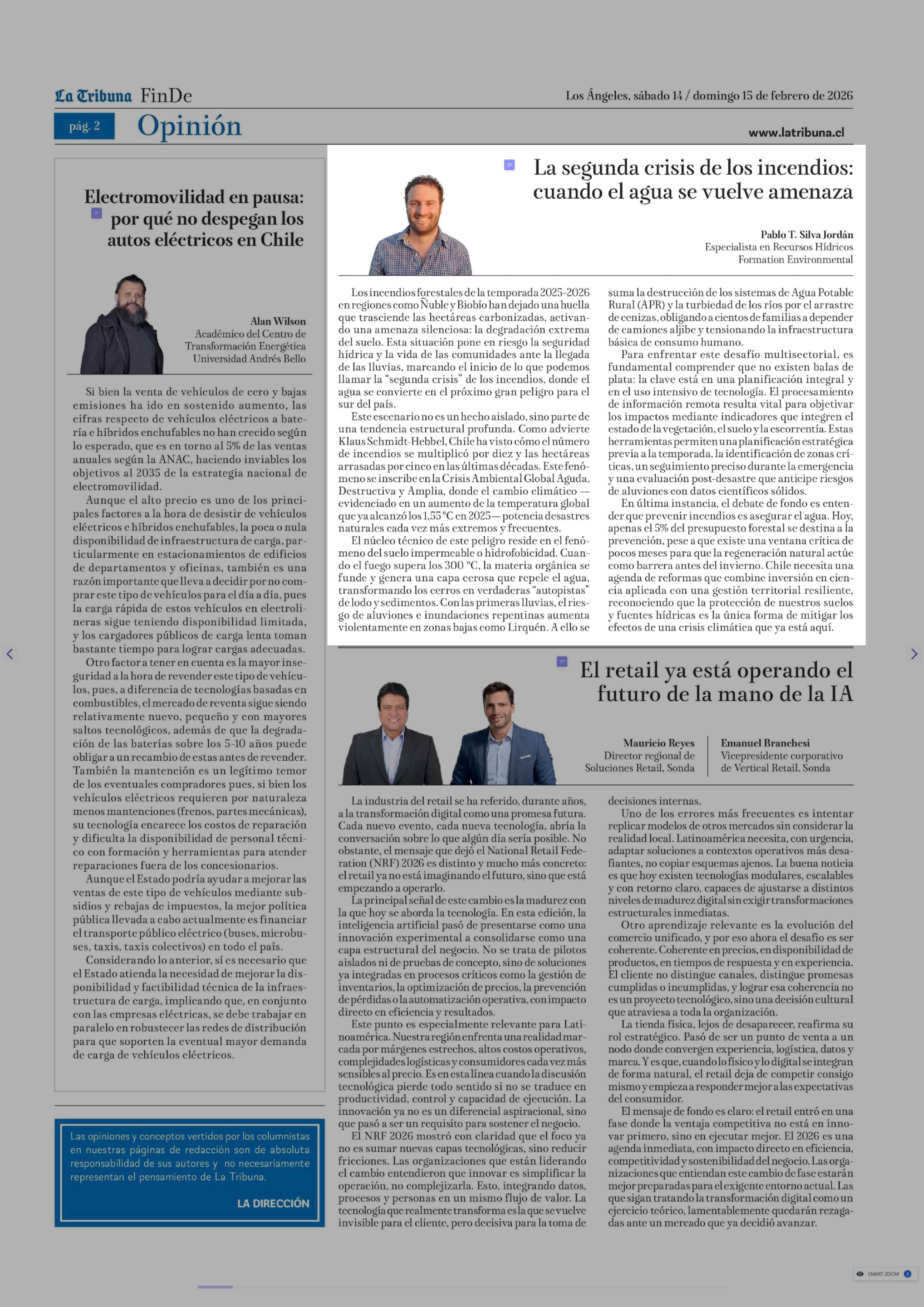 Título: Columnas de Opinión: La segunda crisis de los incendios: cuando el agua se vuelve amenaza