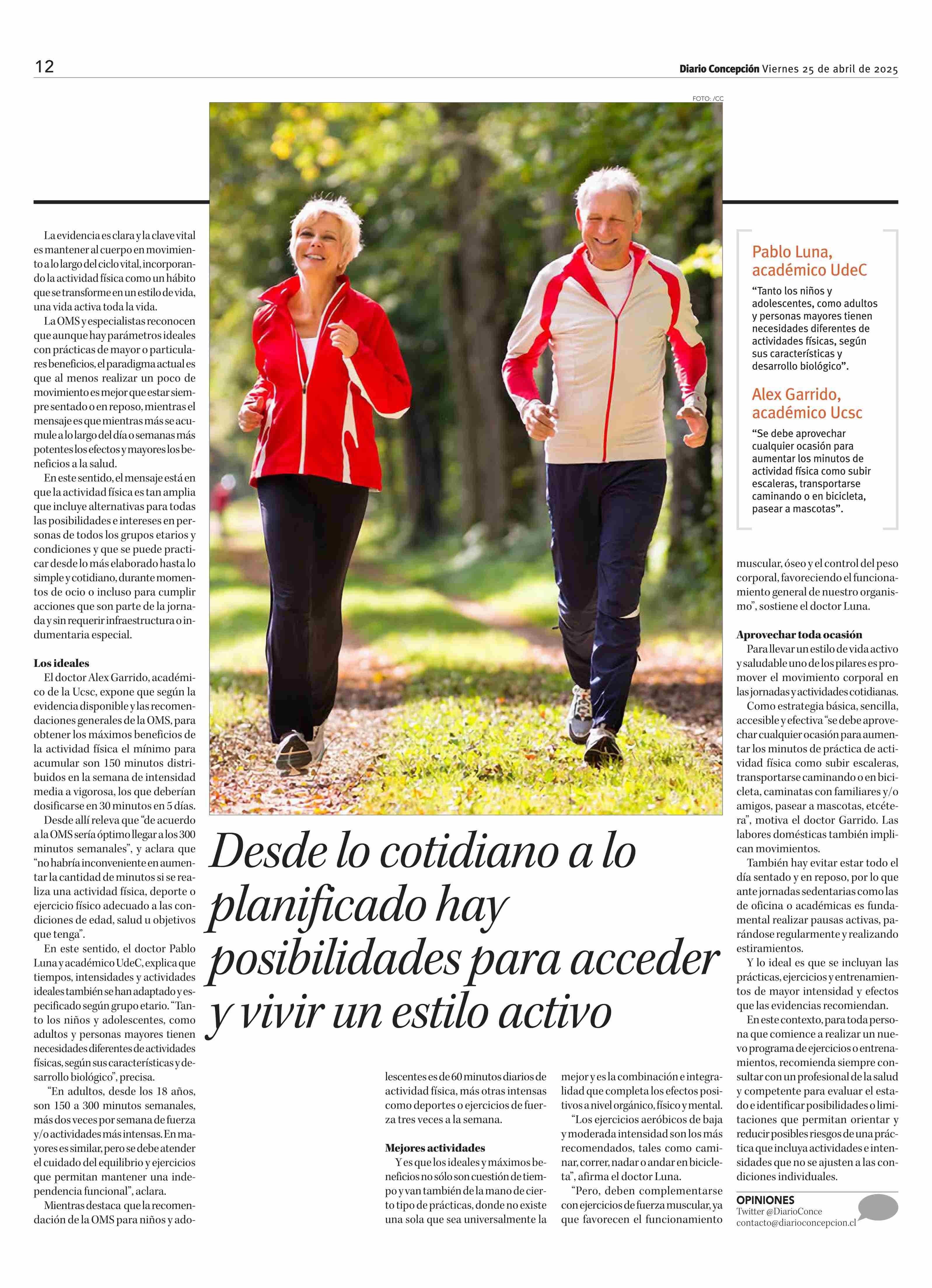 Desde lo cotidiano a lo planificado hay posibilidades para acceder y vivir un estilo activo 25-04-2025 Diario Concepción |