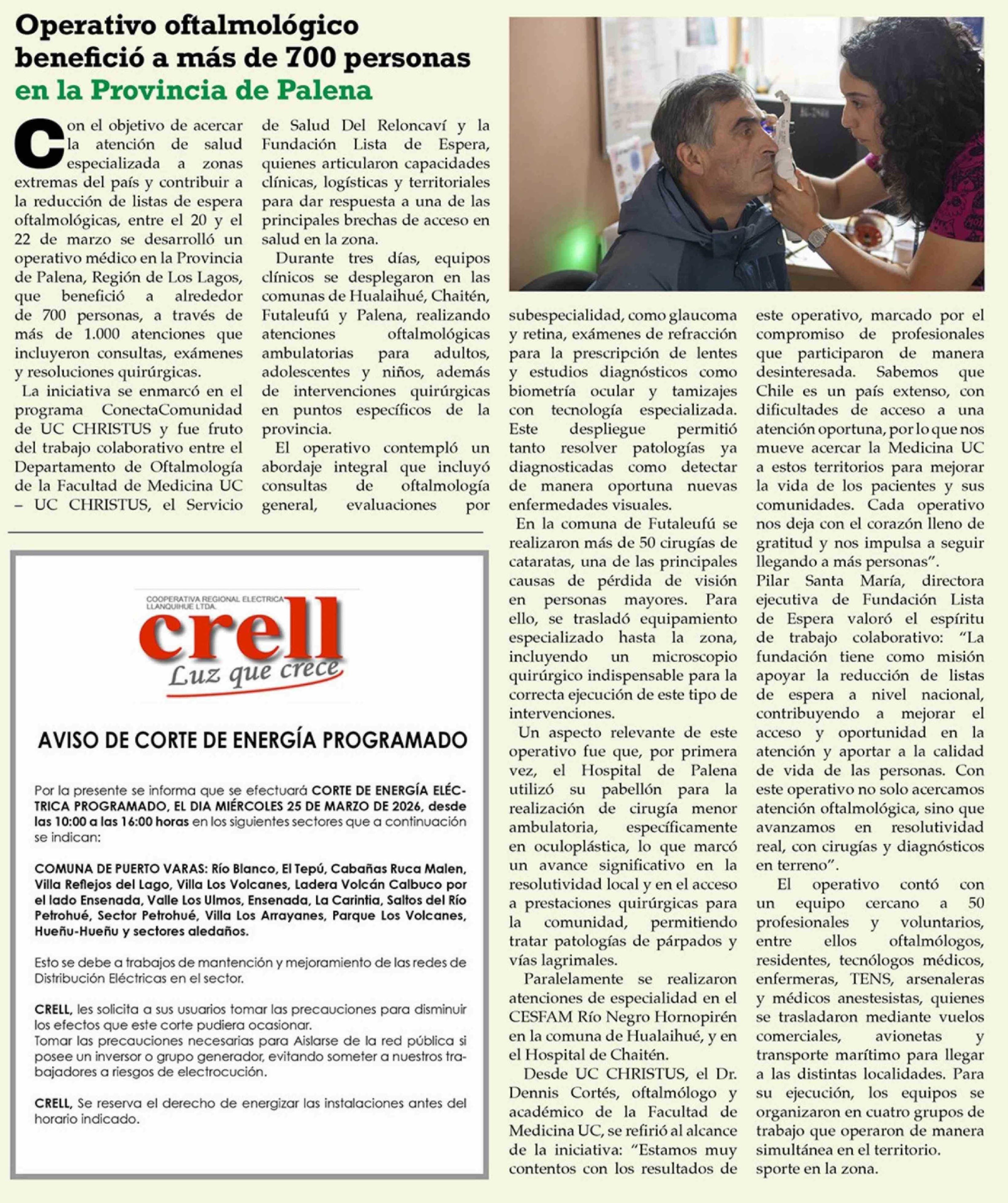 Título: Operativo oftalmológico benefició a más de 700 personas en la Provincia de Palena