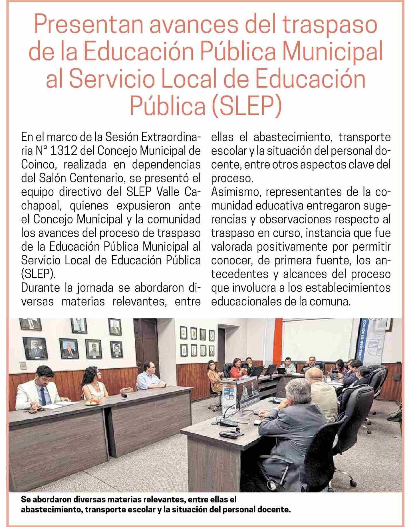 Presentan avances del traspaso de la Educación Pública Municipal al Servicio Local de Educación Pública (SLEP) 14-01-2026 El Rancagüino |
