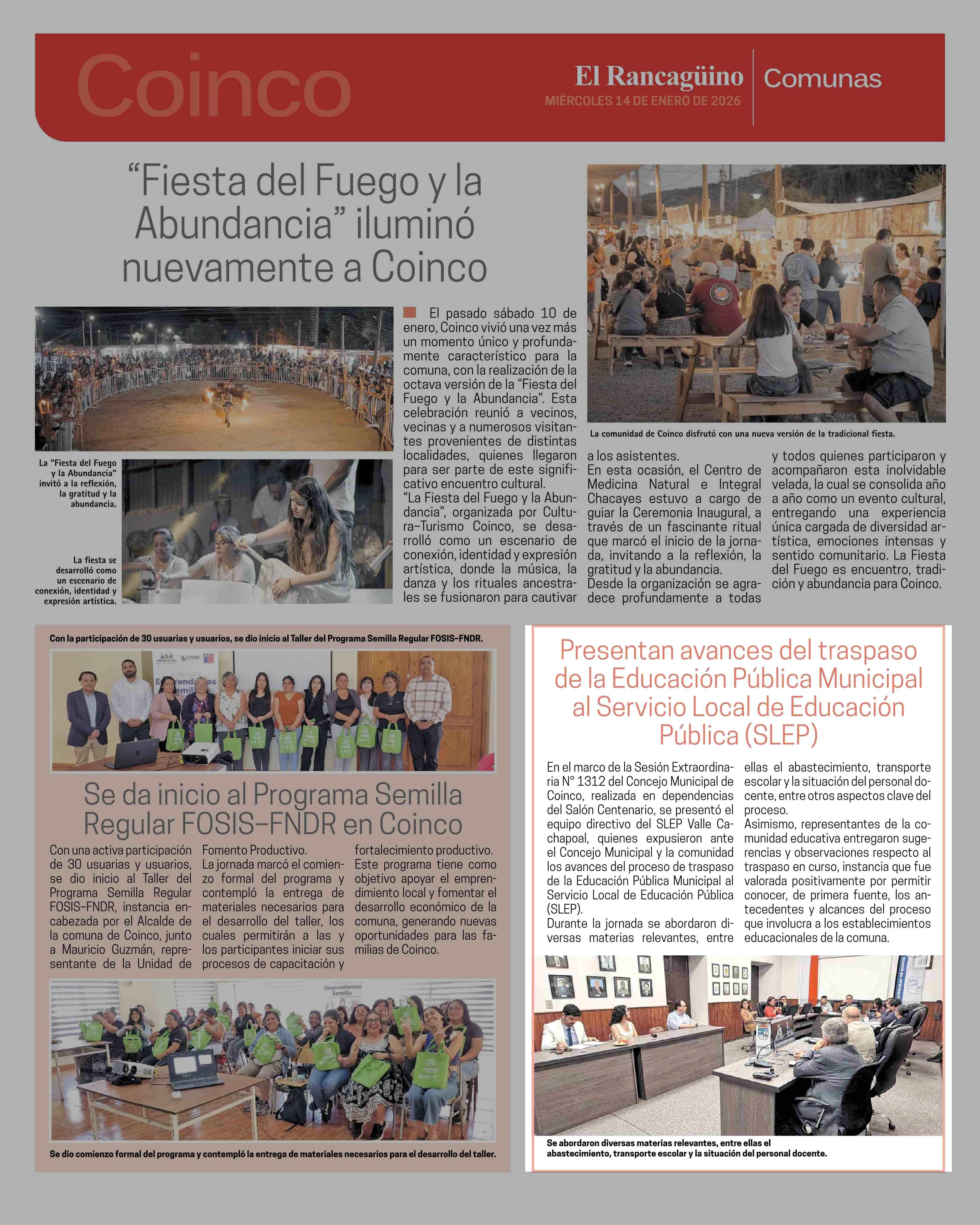 | Fecha: | 14-01-2026 | Sector: | Noticia general | Región: | Región del Libertador General Bernardo O'Higgins |