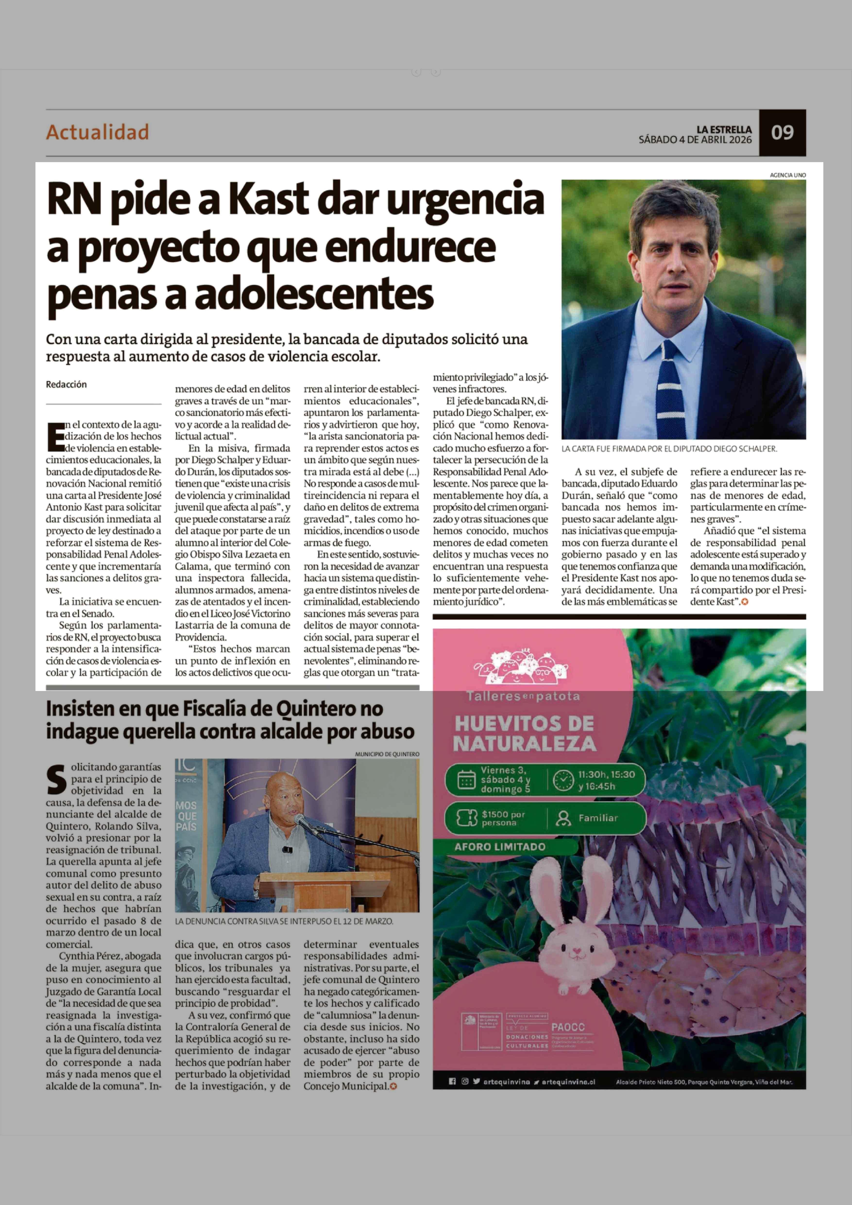 Título: RN pide a Kast dar urgencia a proyecto que endurece penas a adolescentes