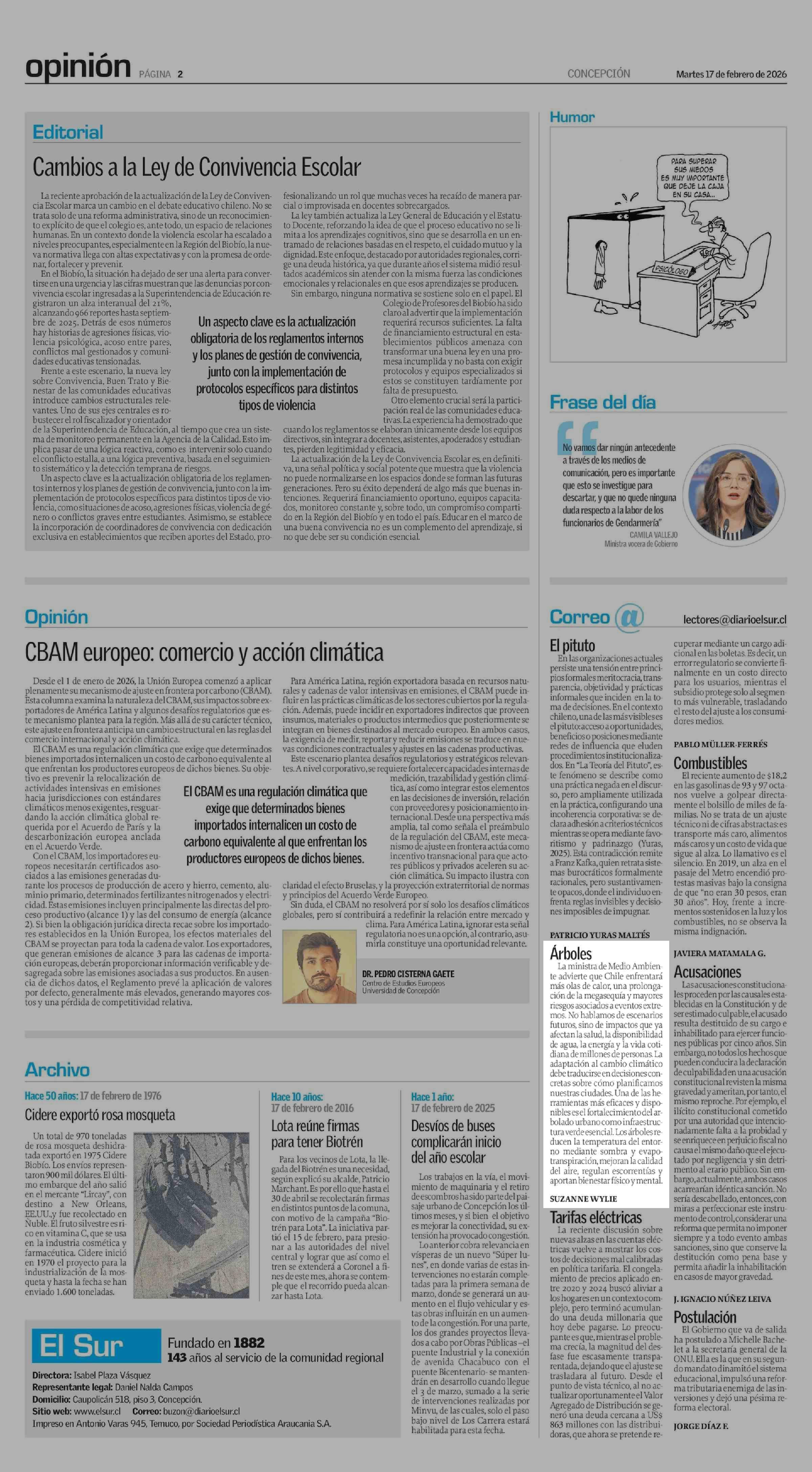 CARTAS: Árboles 17-02-2026 El Sur |