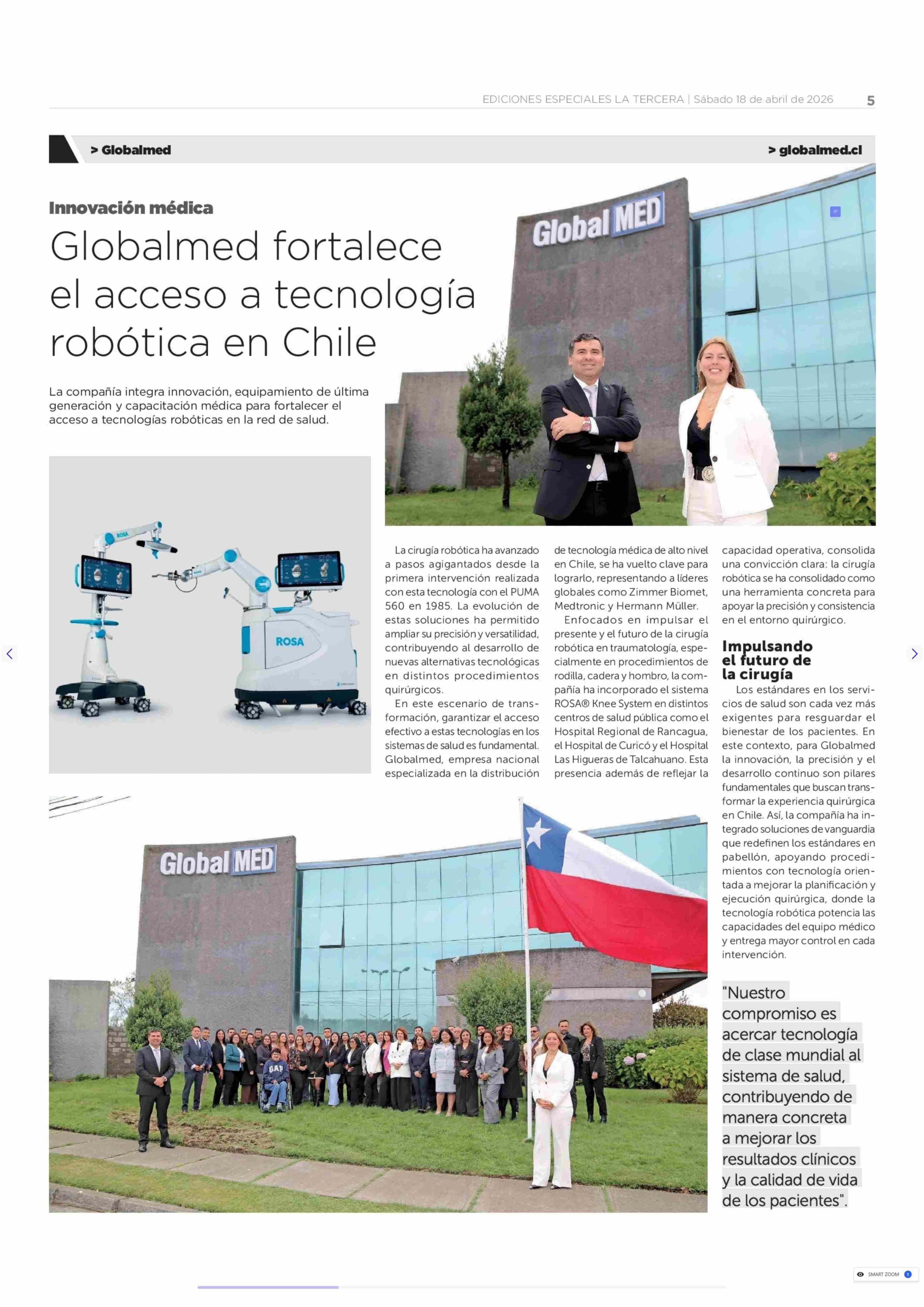 Globalmed fortalece el acceso a tecnología robótica en Chile 18-04-2026 La Tercera |