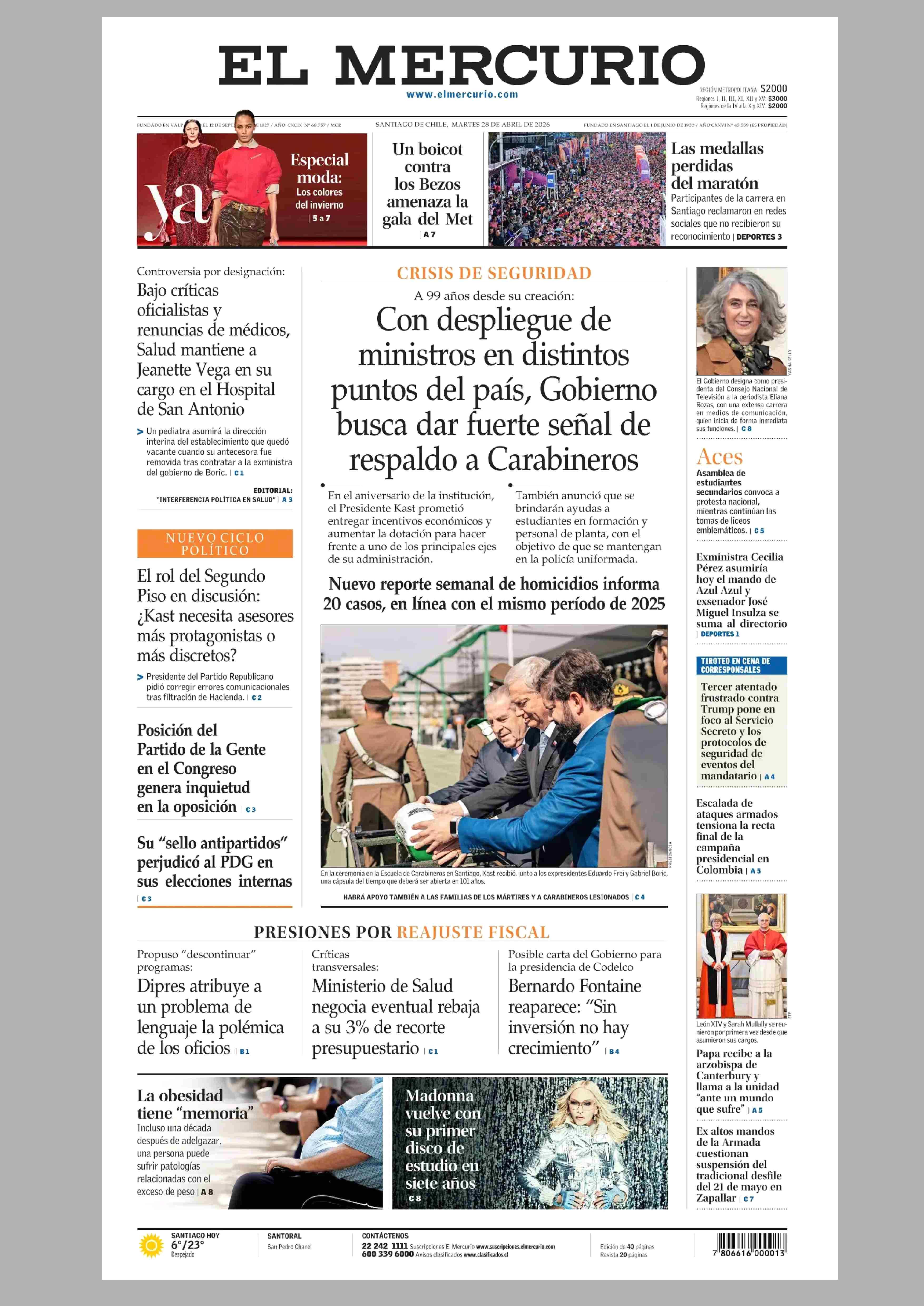 PORTADA EL MERCURIO (A) - CHILE 28-04-2026 El Mercurio |