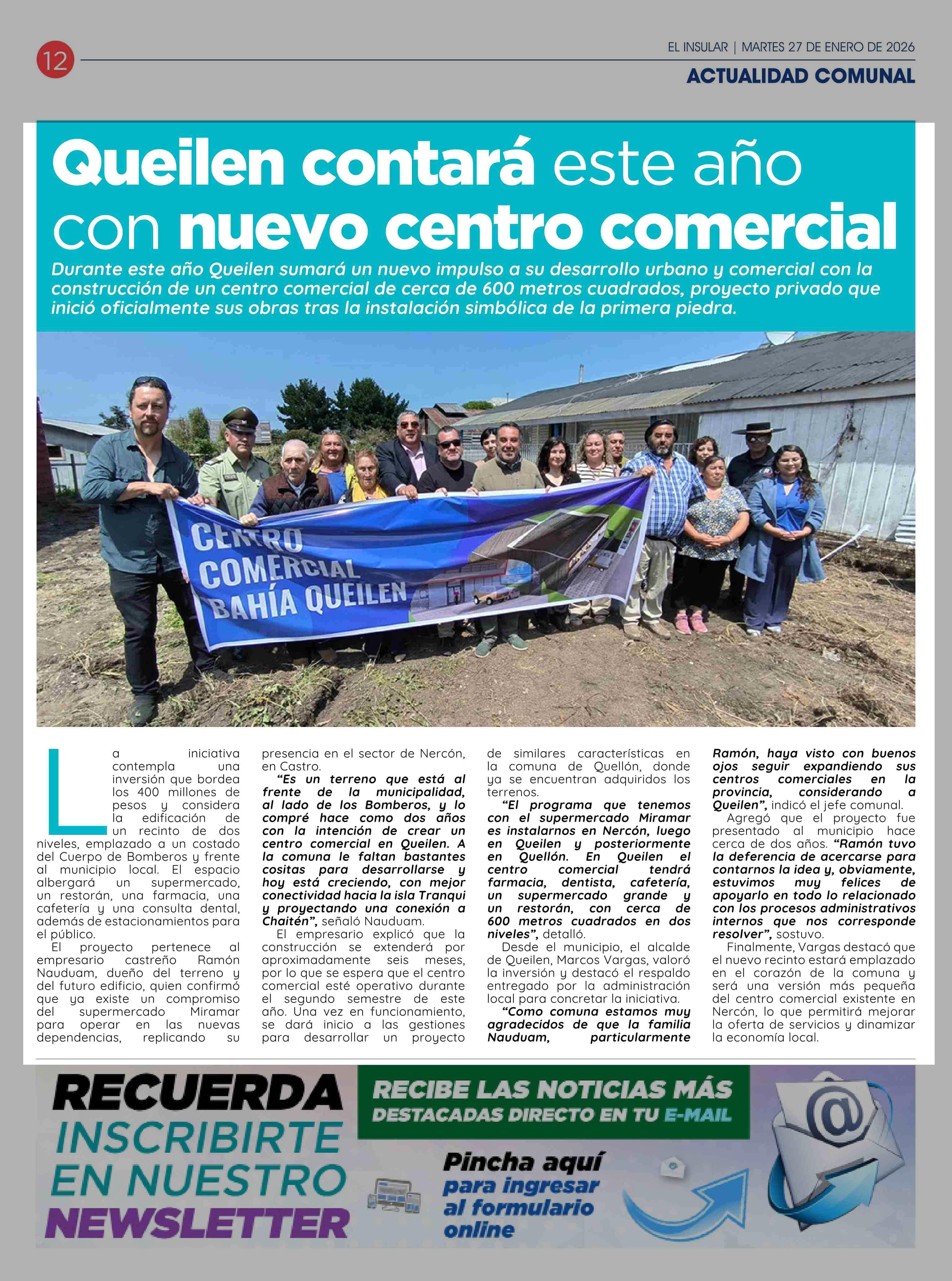 Queilen contará este año con nuevo centro comercial 27-01-2026 El Insular |