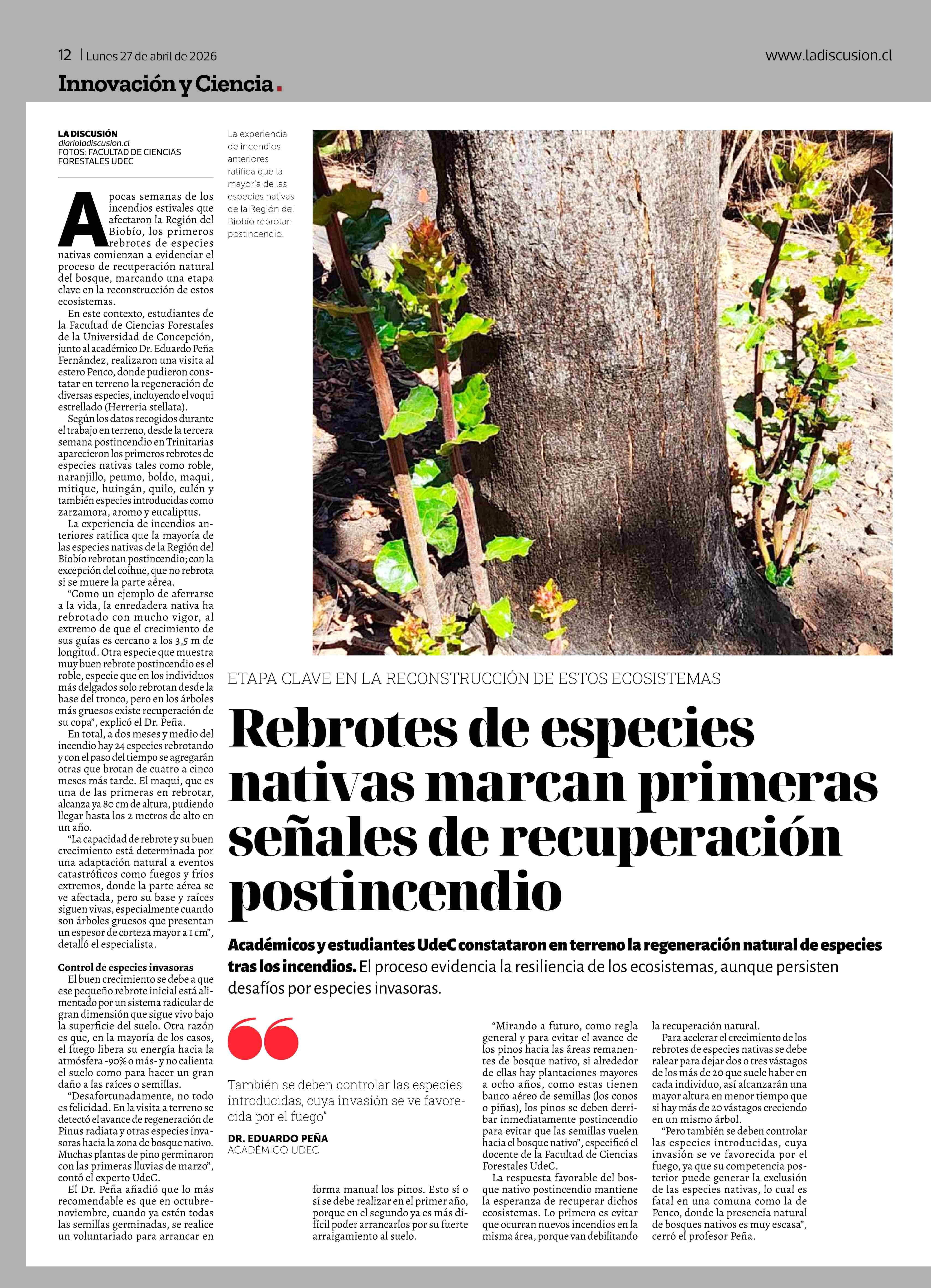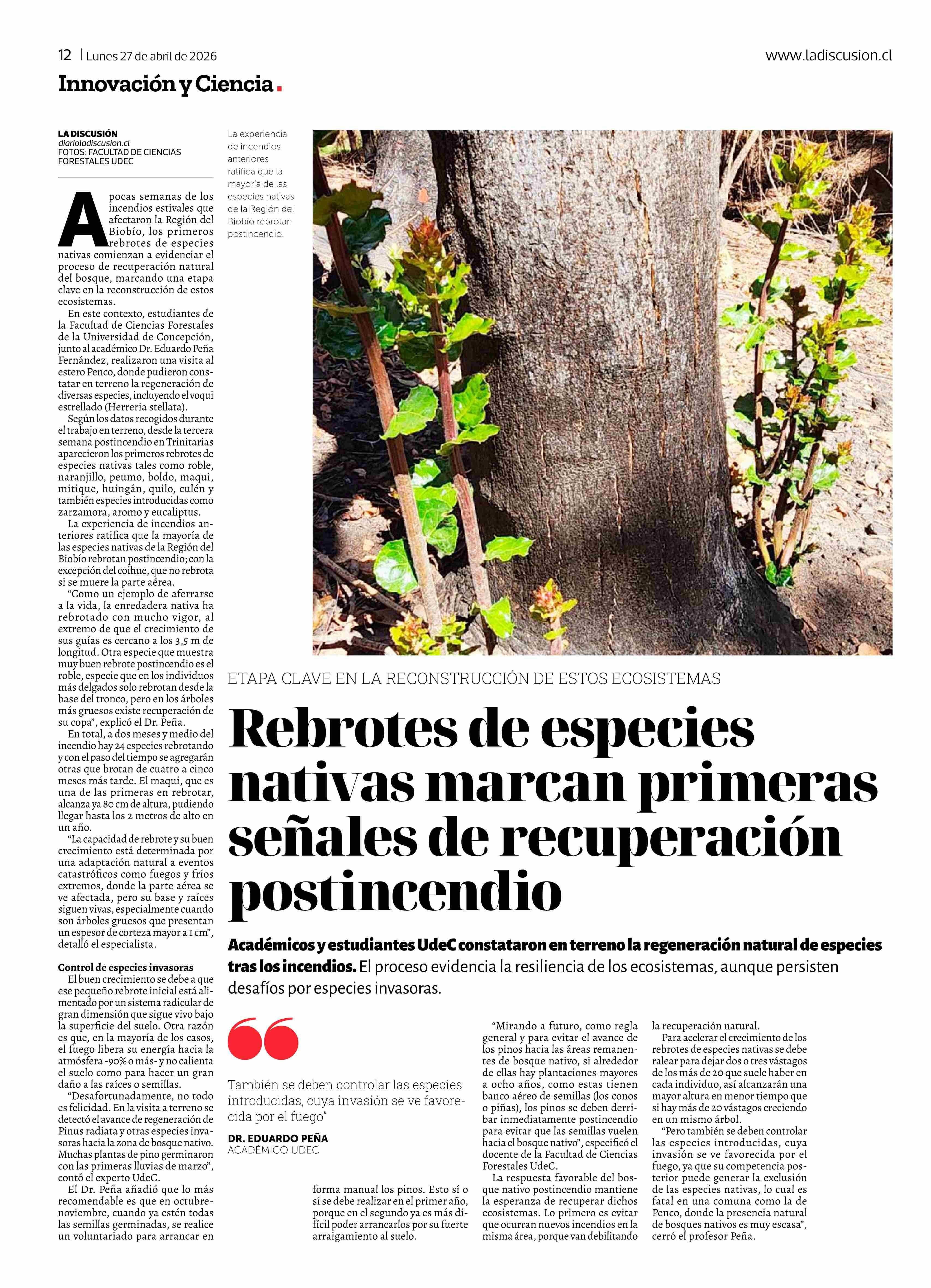 Título: Rebrotes de especies nativas marcan primeras señales de recuperación postincendio