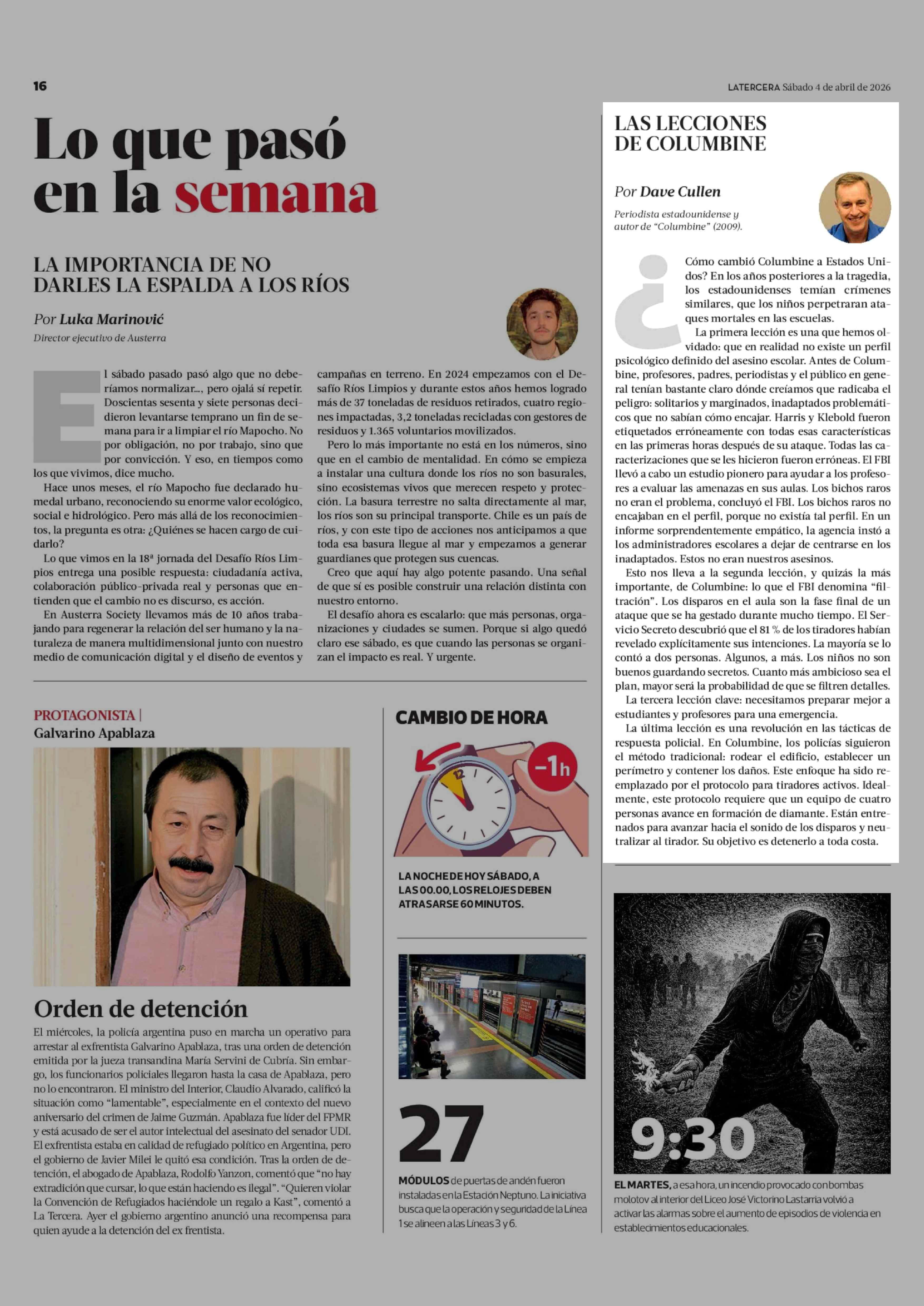 Columnas de Opinión: LAS LECCIONES DE COLUMBINE 04-04-2026 La Tercera |