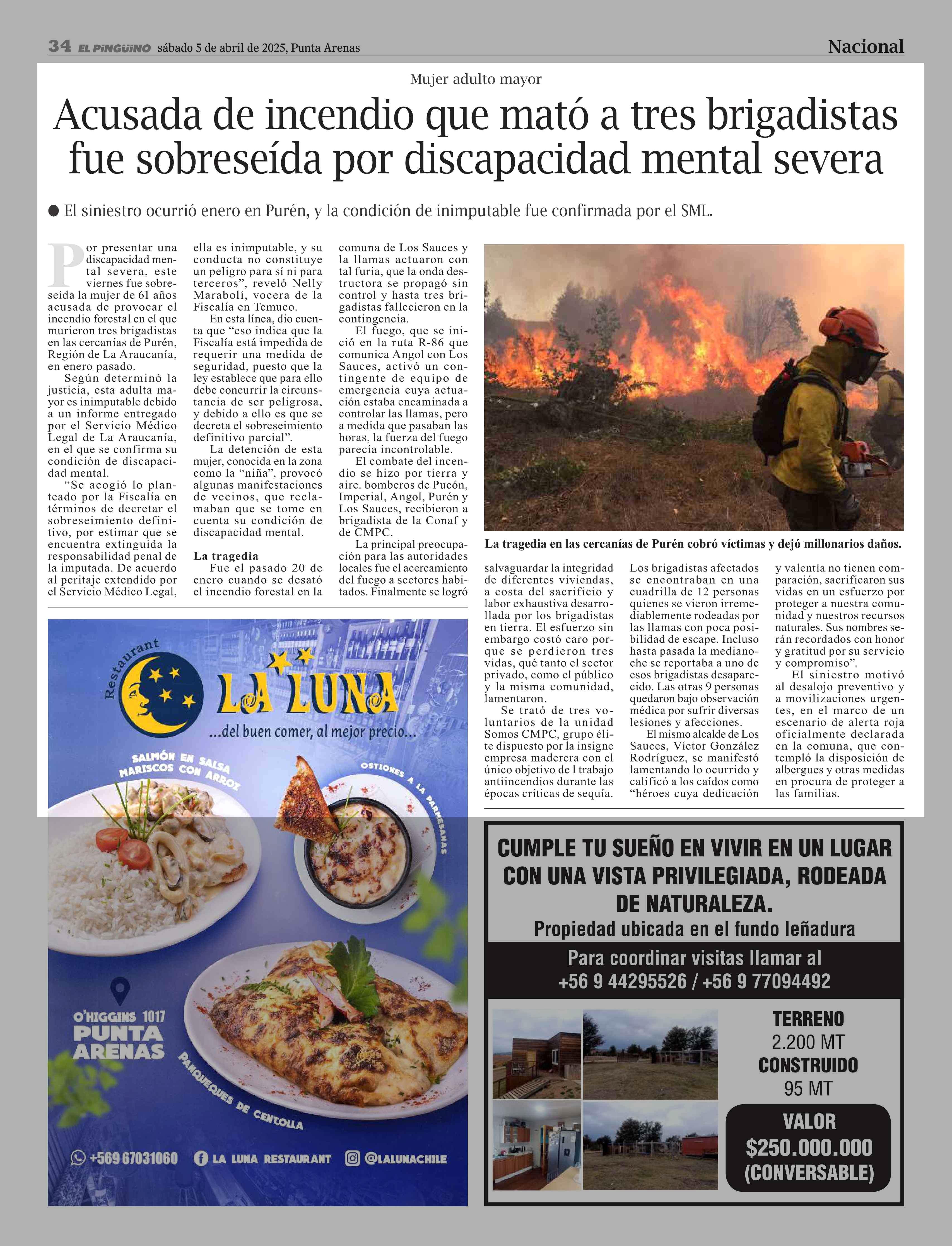 Acusada de incendio que mató a tres brigadistas fue sobreseída por discapacidad mental severa 05-04-2025 El Pingüino |