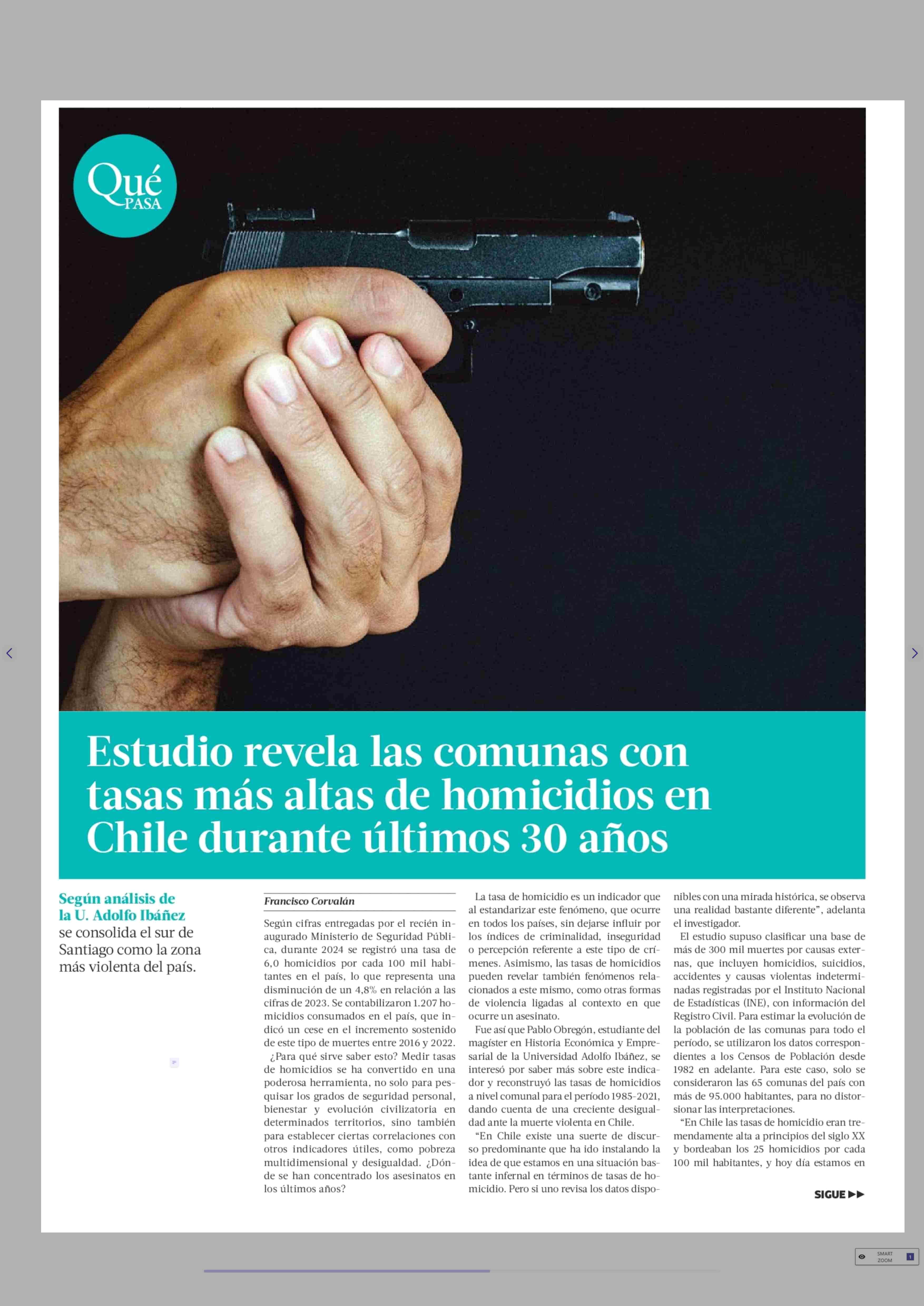 | Título: | Estudio revela las comunas con tasas más altas de homicidios en Chile durante últimos 30 años |