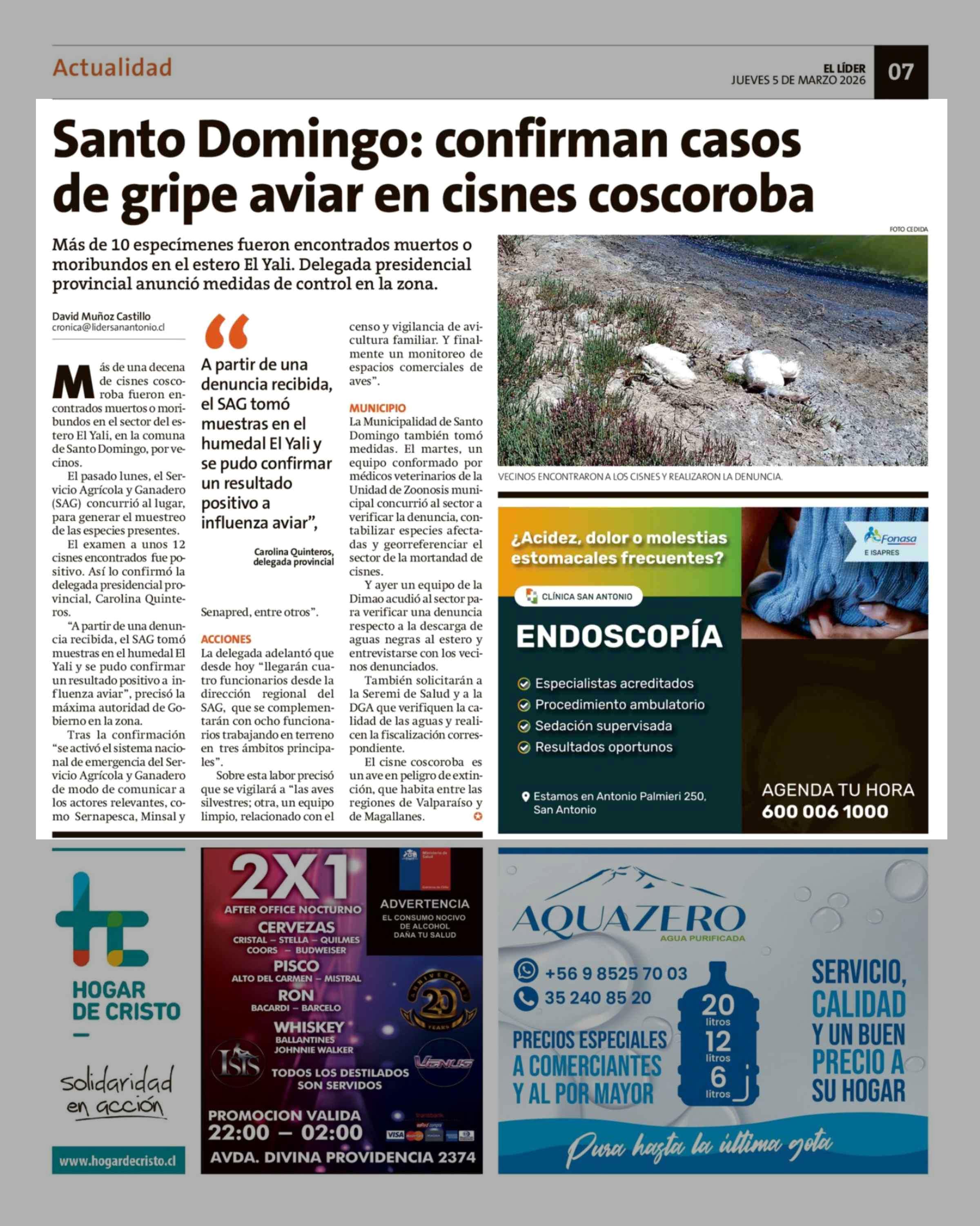 Santo Domingo: confirman casos de gripe aviar en cisnes coscoroba 05-03-2026 El Líder |
