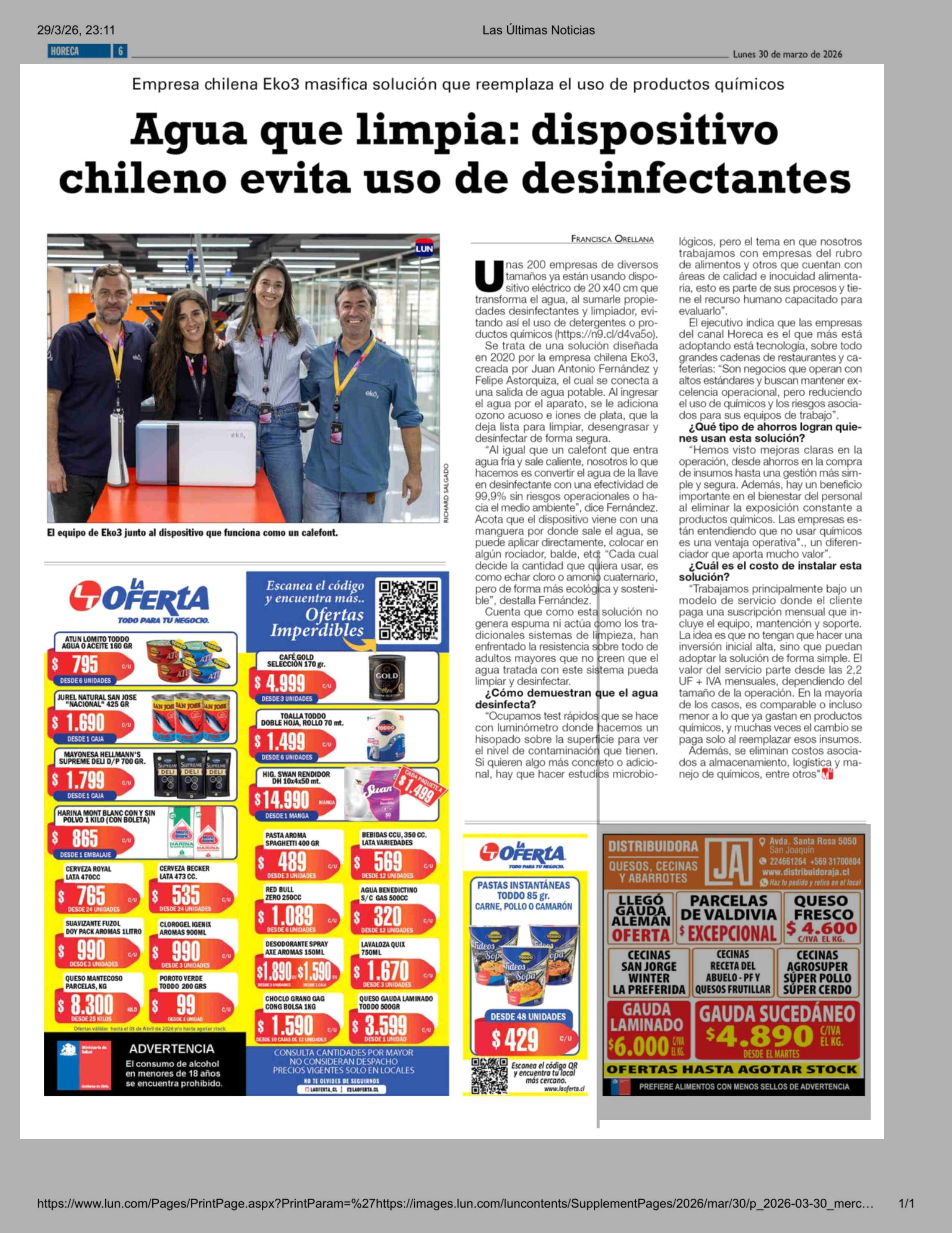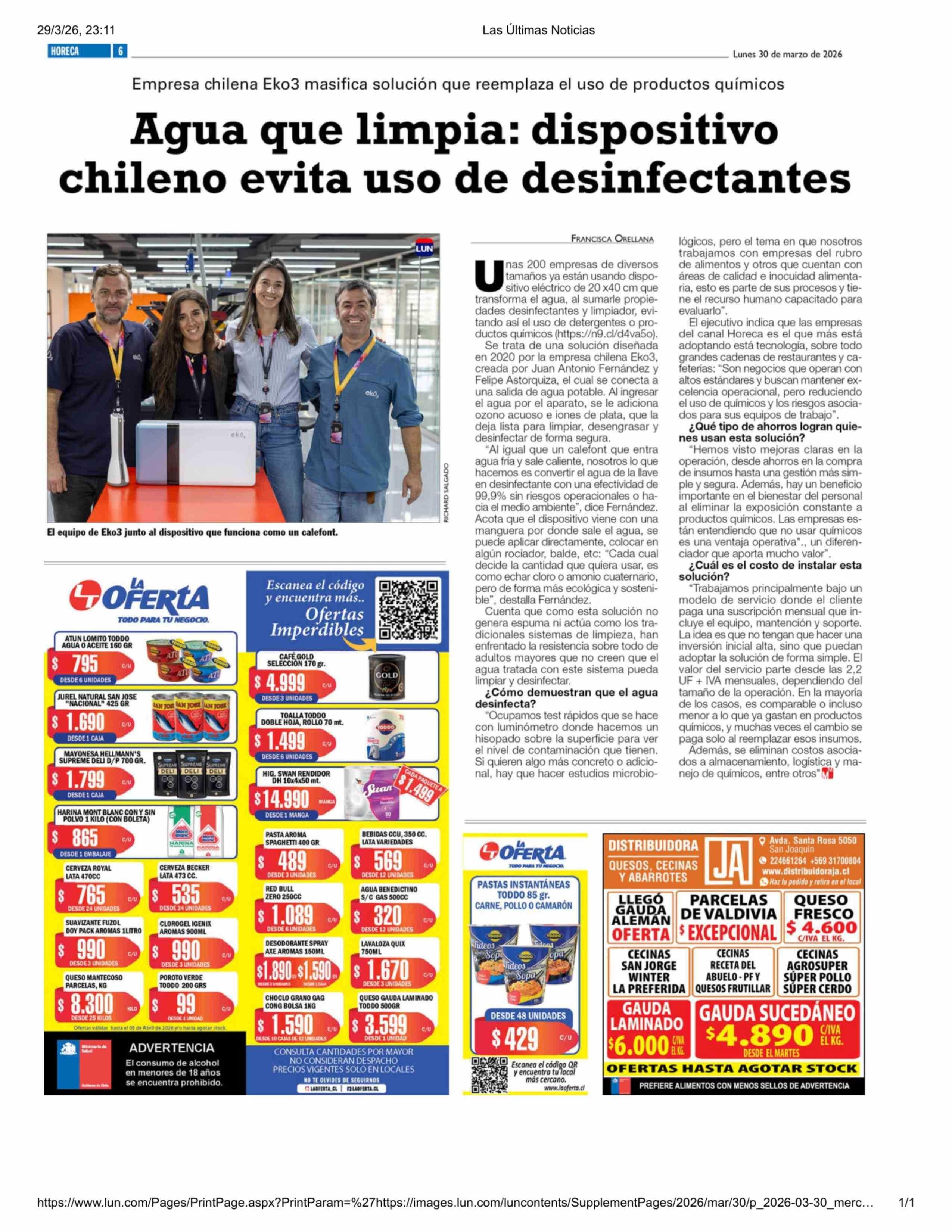 Título: Agua que limpia: dispositivo chileno evita uso de desinfectantes