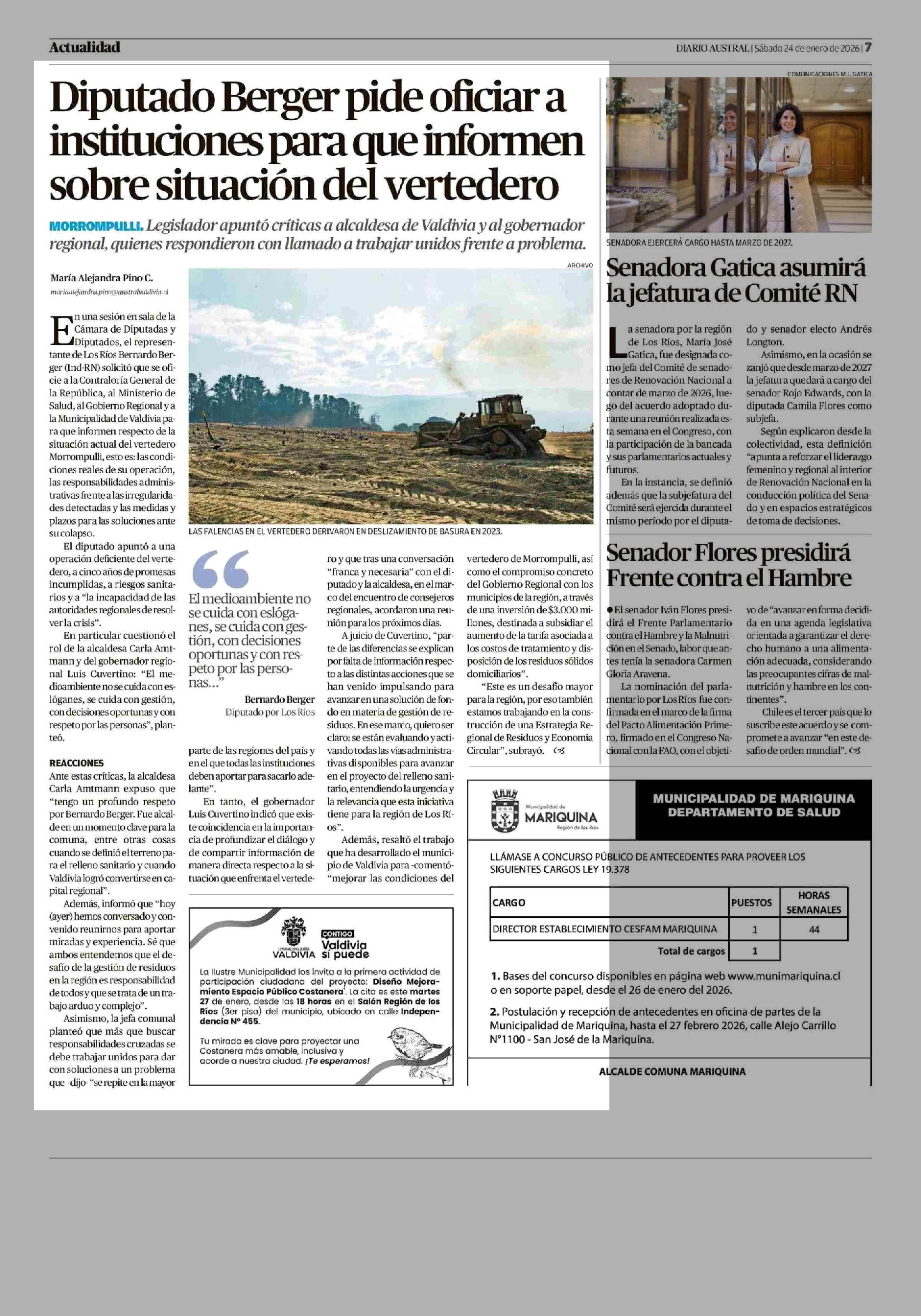 Fuente: Diario Austral Región de Los Ríos (Diario Austral Región de Los Ríos) Página(s): 7