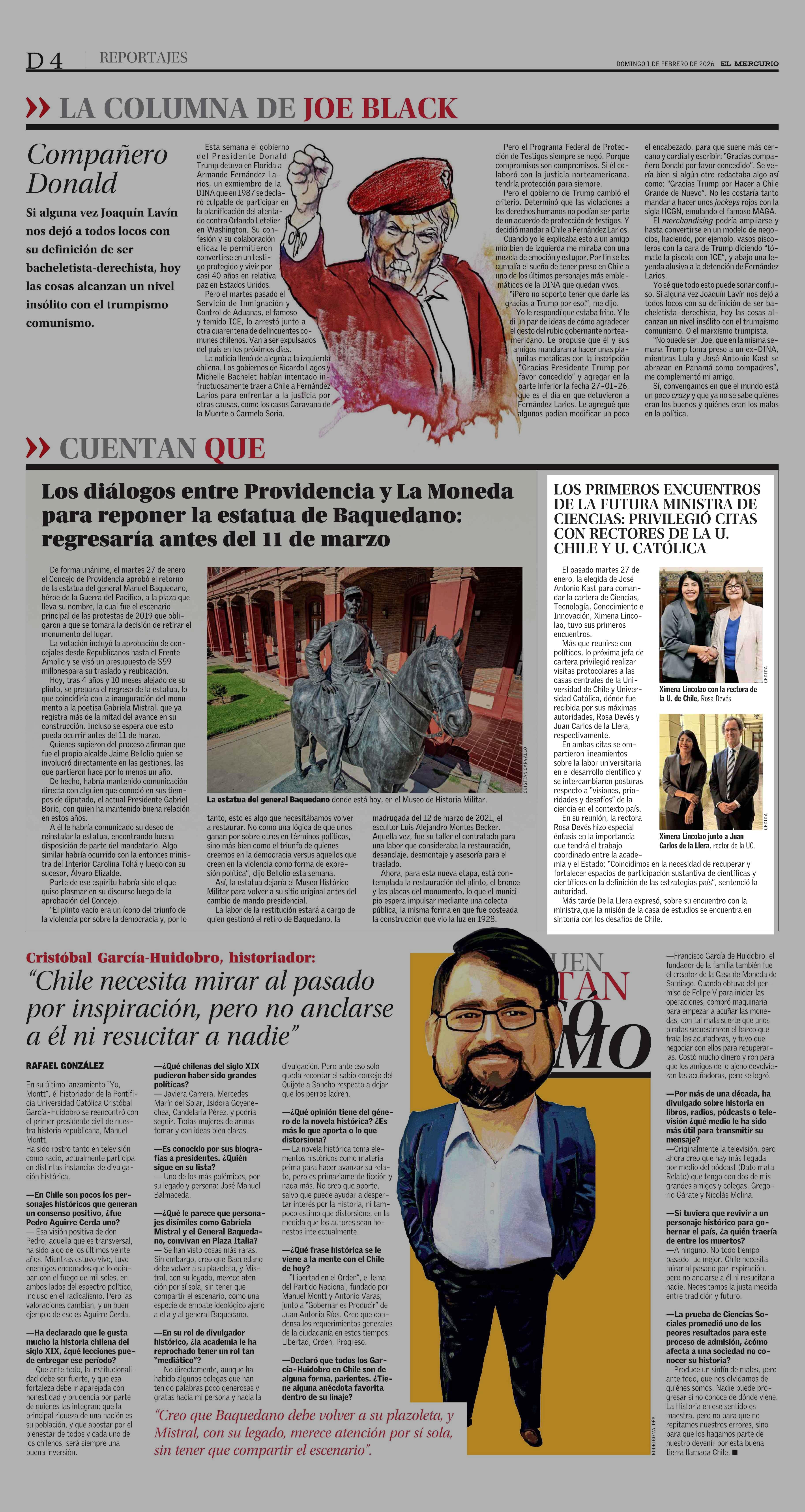 LOS PRIMEROS ENCUENTROS DE LA FUTURA MINISTRA DE CIENCIAS: PRIVILEGIÓ CITAS CON RECTORES DE LAU. CHILE Y U. CATÓLICA 01-02-2026 El Mercurio |