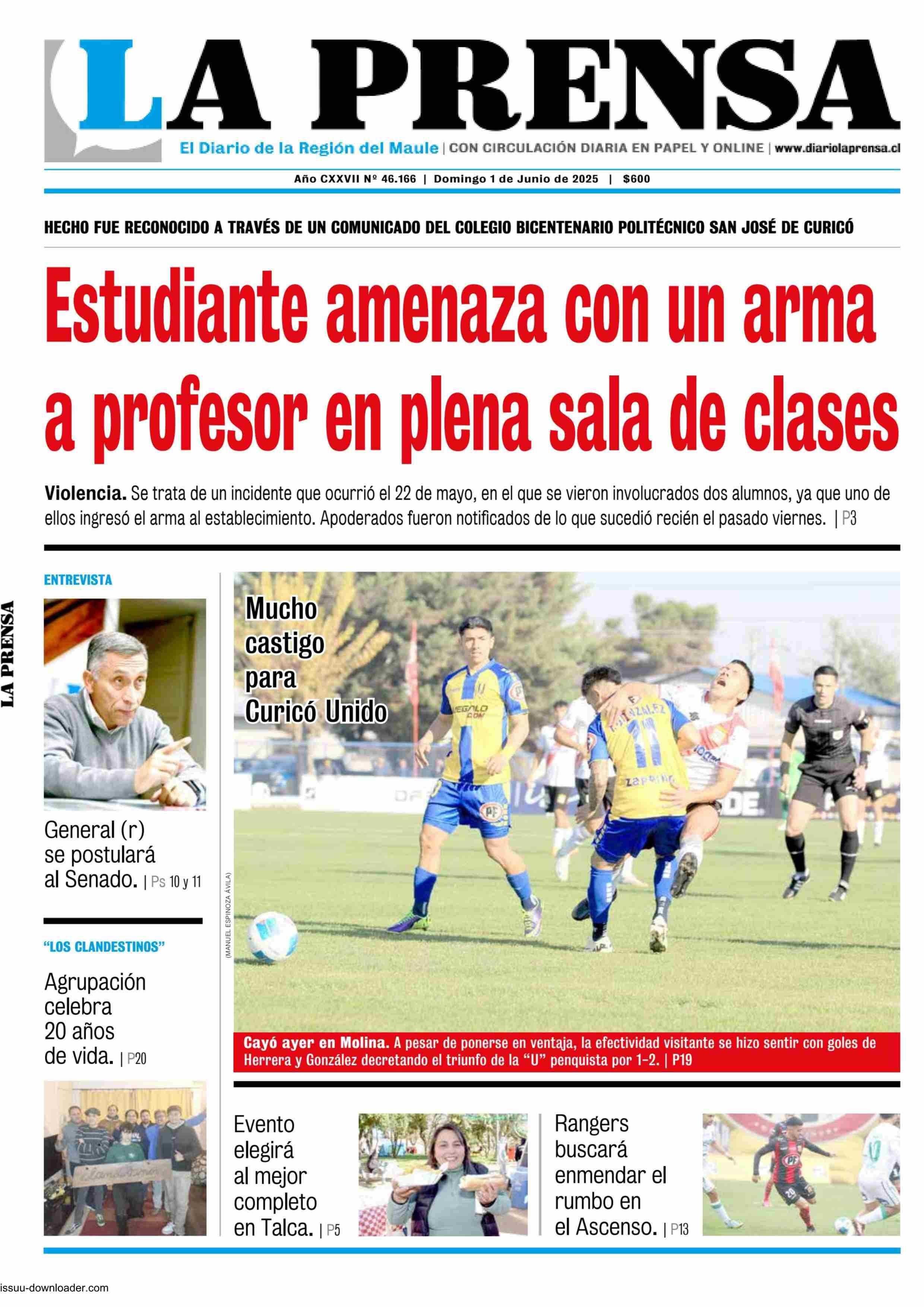 PORTADA LA PRENSA DE CURICÓ CHILE 01-06-2025 La Prensa de Curicó |