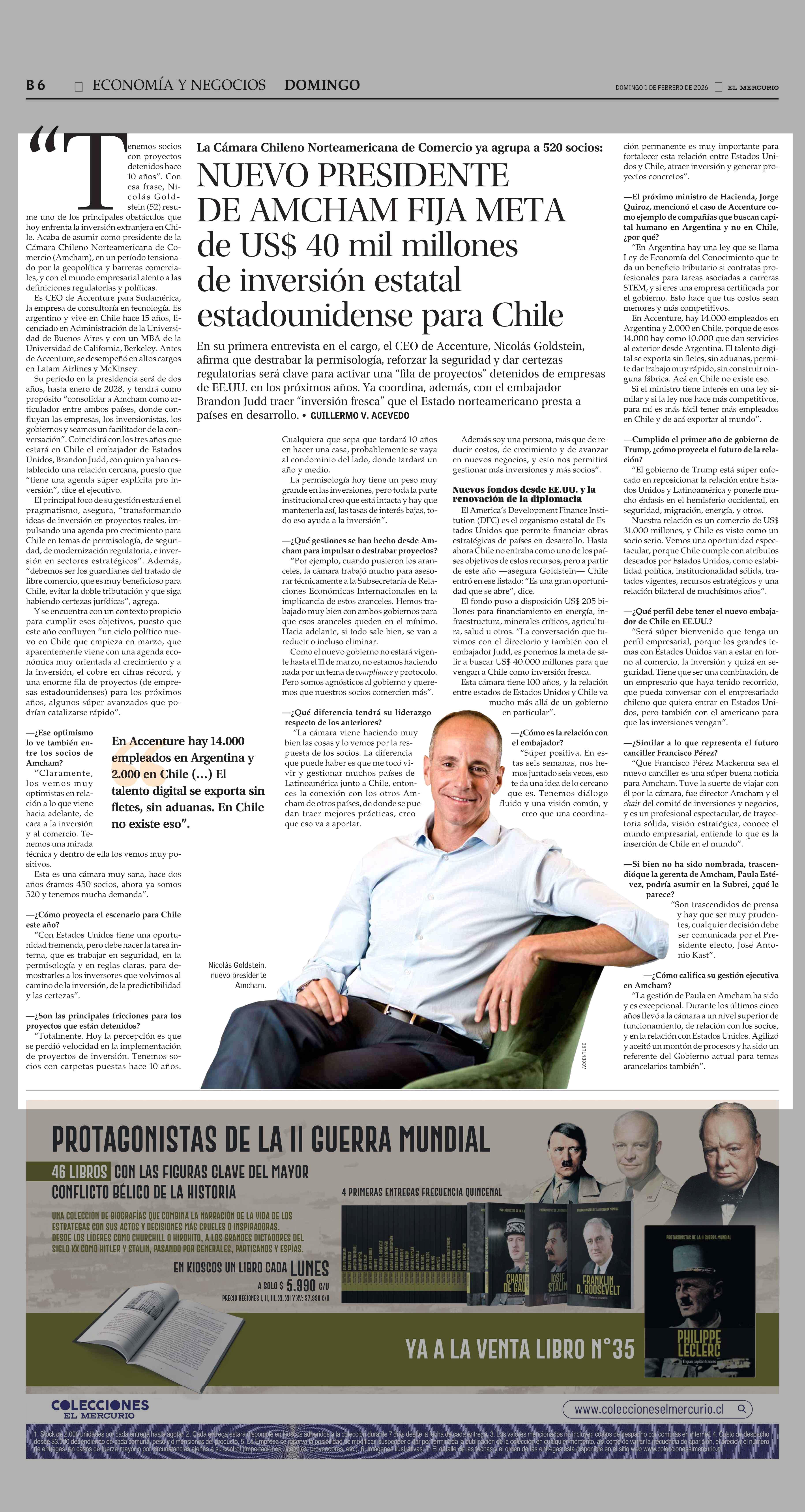 Título: NUEVO PRESIDENTE DE AMCHAM FIJA META de US$ 40 mil millones de inversión estatal estadounidense para Chile