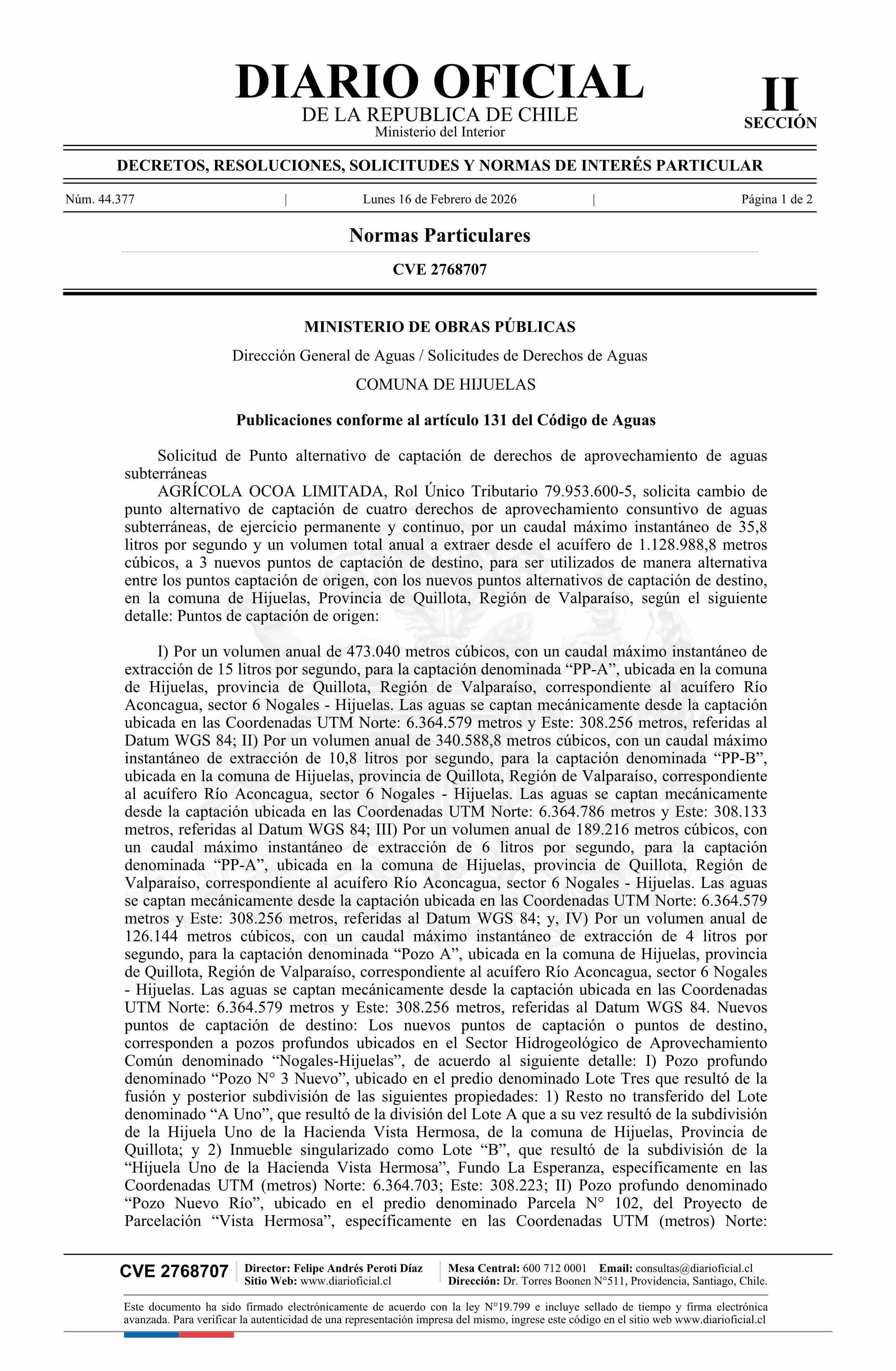 Fuente: Diario Oficial Edición Electrónica (Diario Oficial de Chile - 2 Normas Particulares) Página(s): 204-205