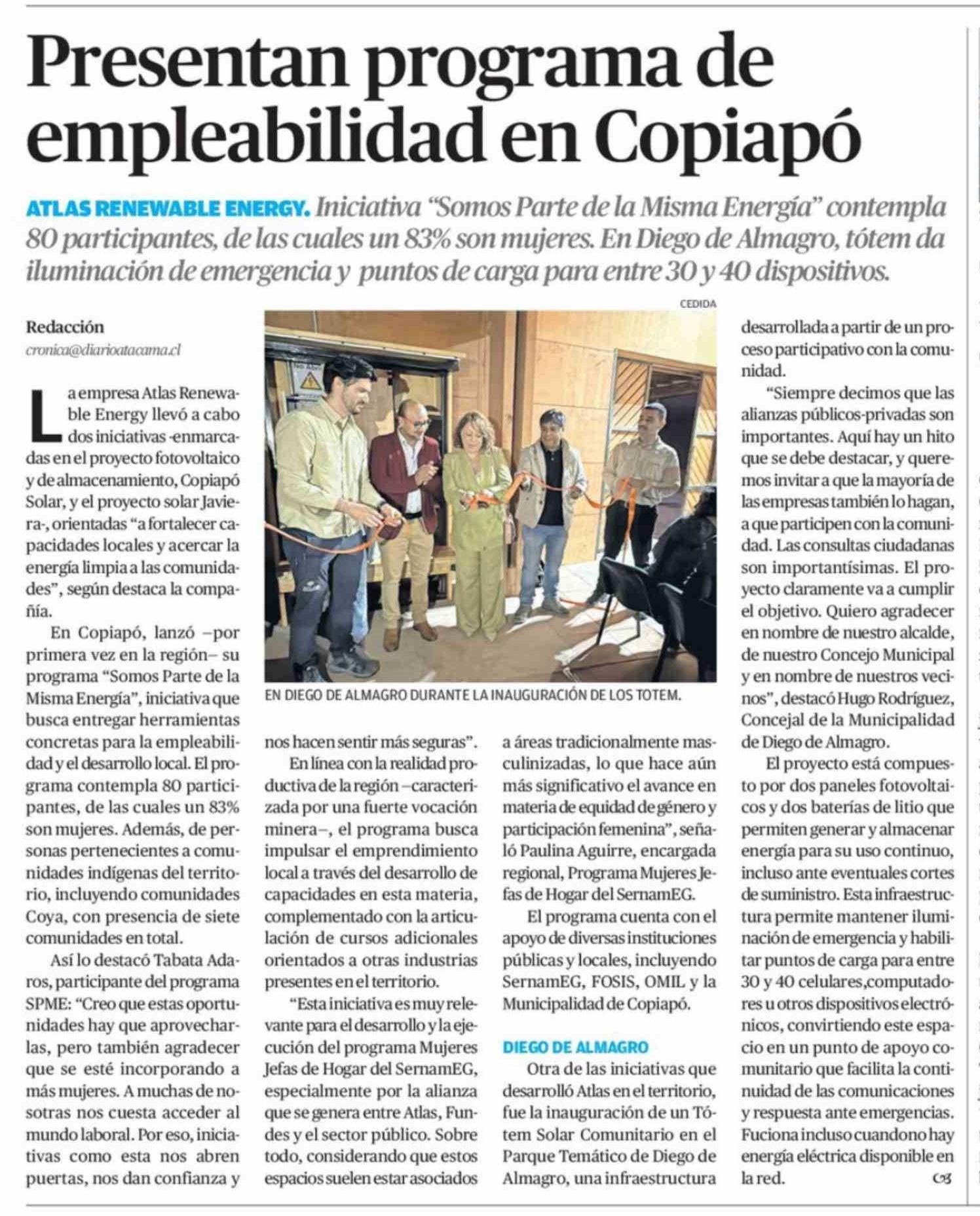 Presentan programa de empleabilidad en Copiapó 30-03-2026 El Diario de Atacama |