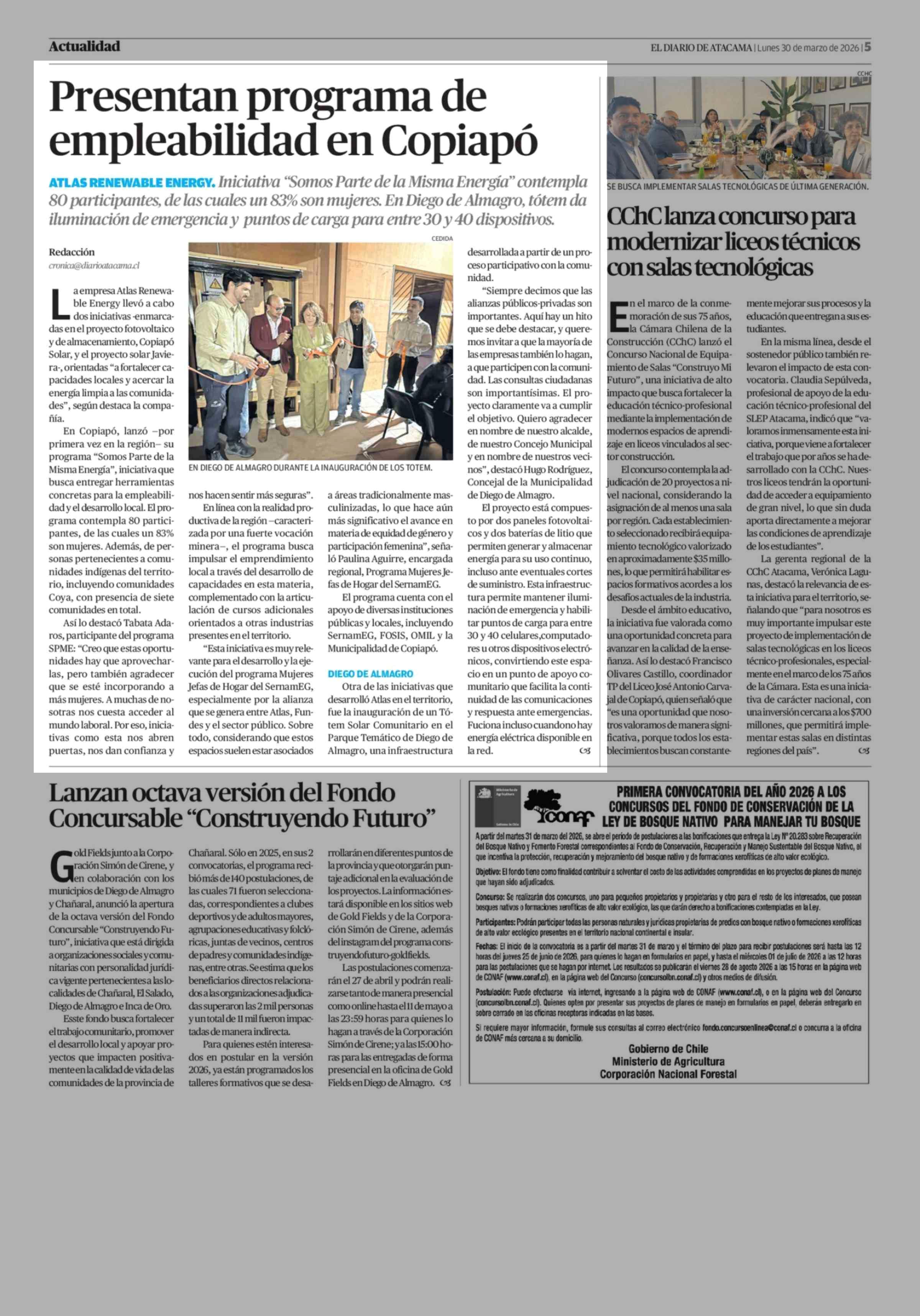 | Fecha: | 30-03-2026 | Sector: | Noticia general | Región: | Región de Atacama |