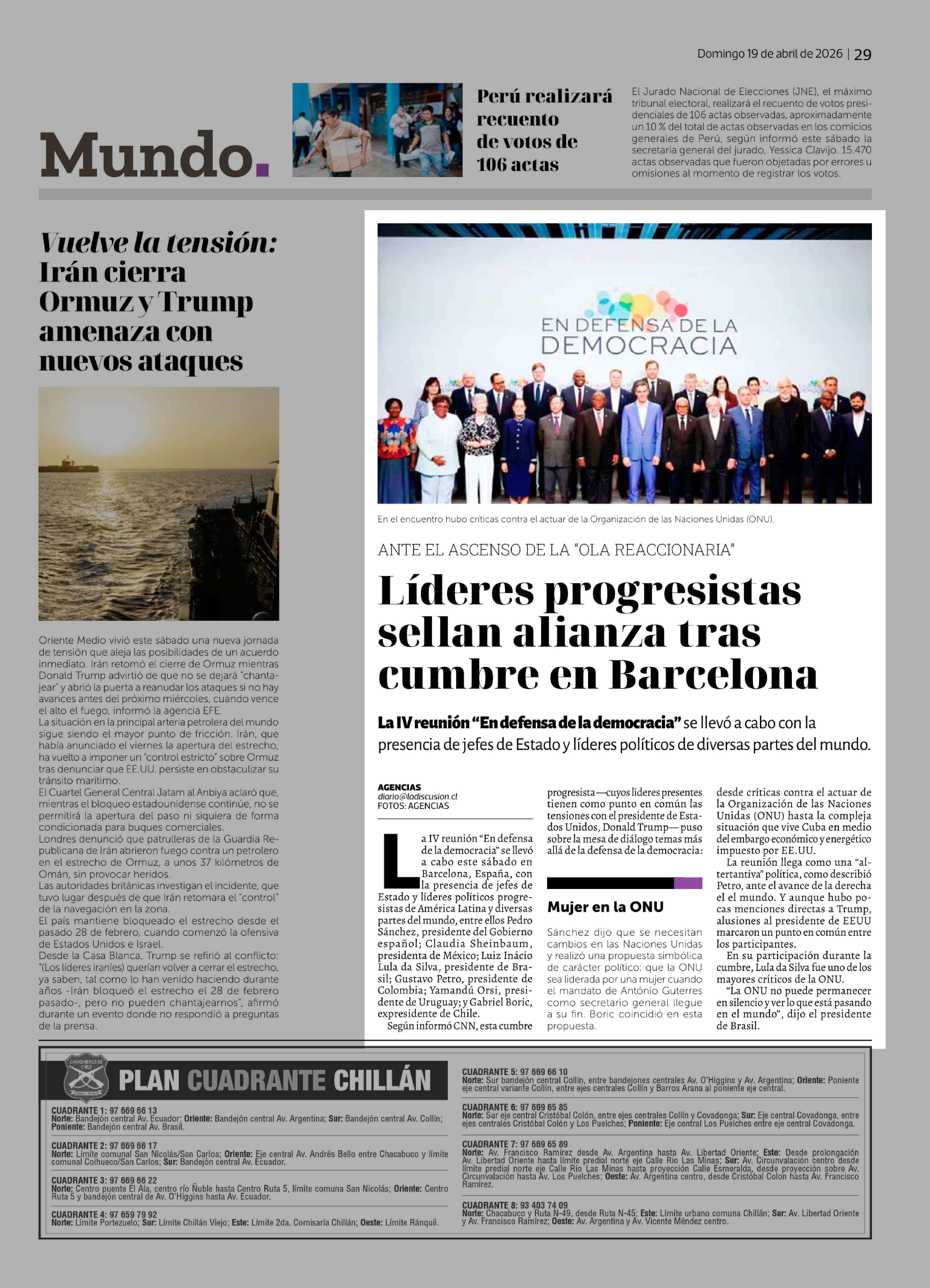 Líderes progresistas sellan alianza tras cumbre en Barcelona 19-04-2026 La Discusión |