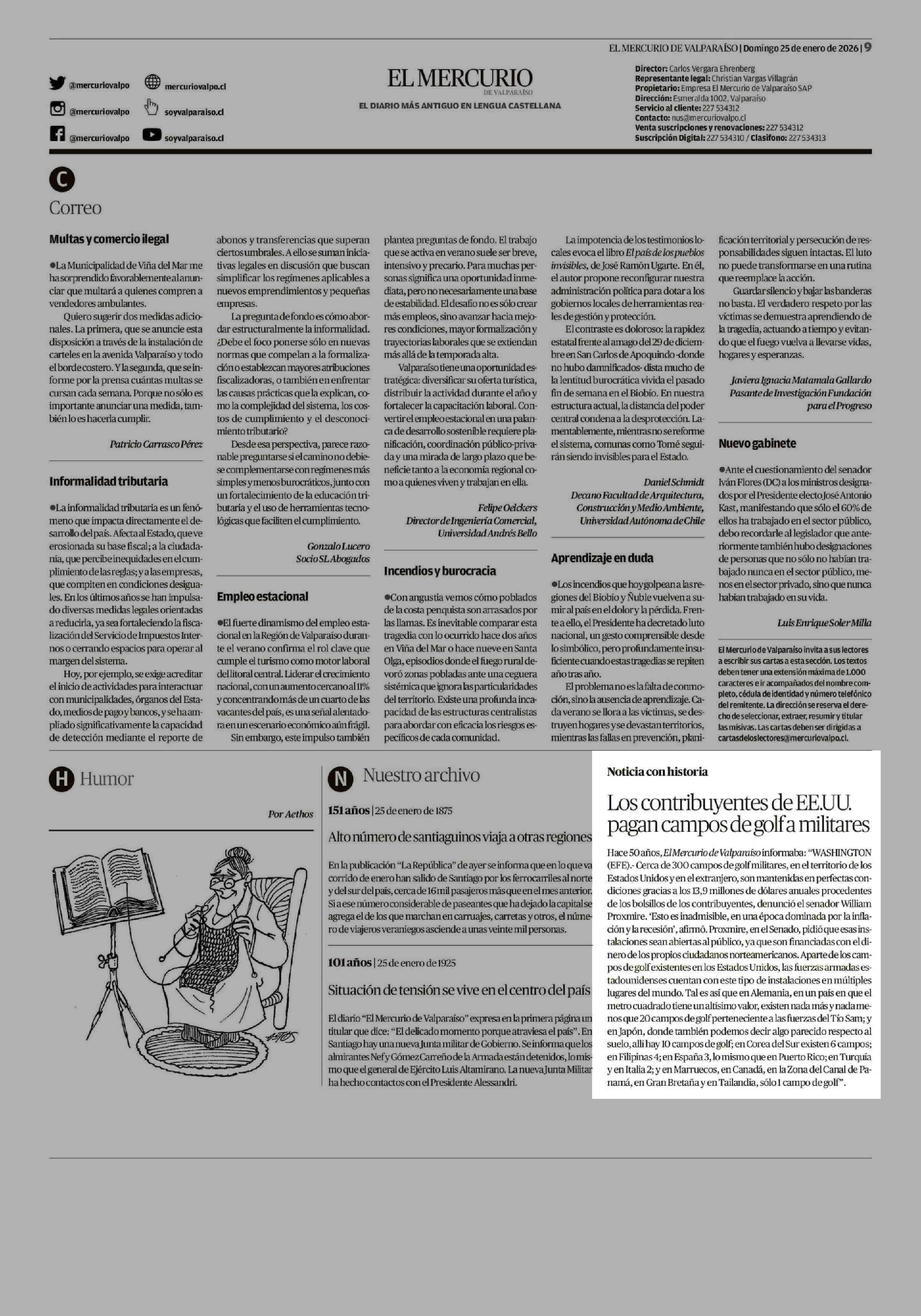 Editorial: Los contribuyentes de EE.UU. pagan campos de golf a militares 25-01-2026 El Mercurio de Valparaíso |