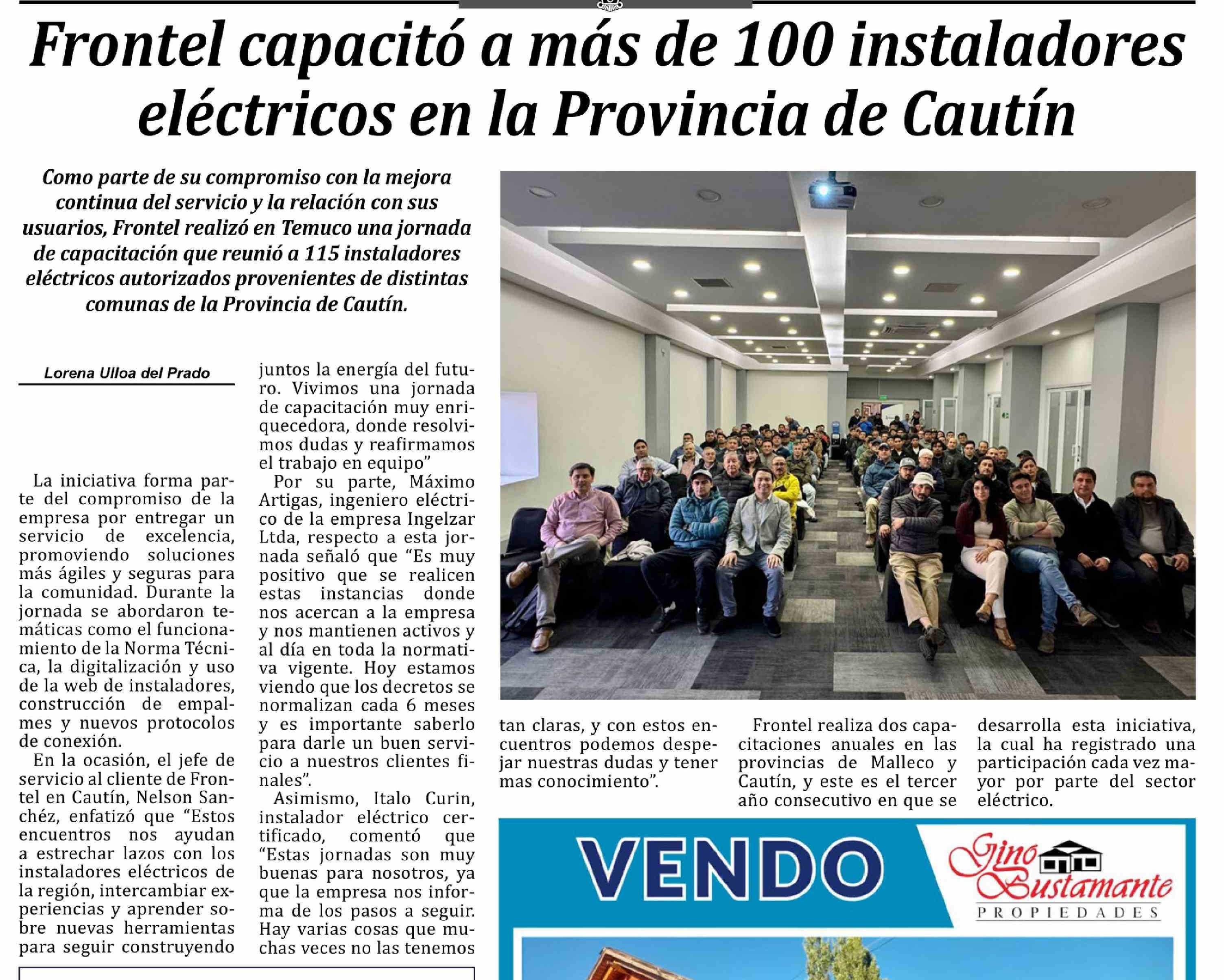Título: Frontel capacitó a más de 100 instaladores eléctricos en la Provincia de Cautín