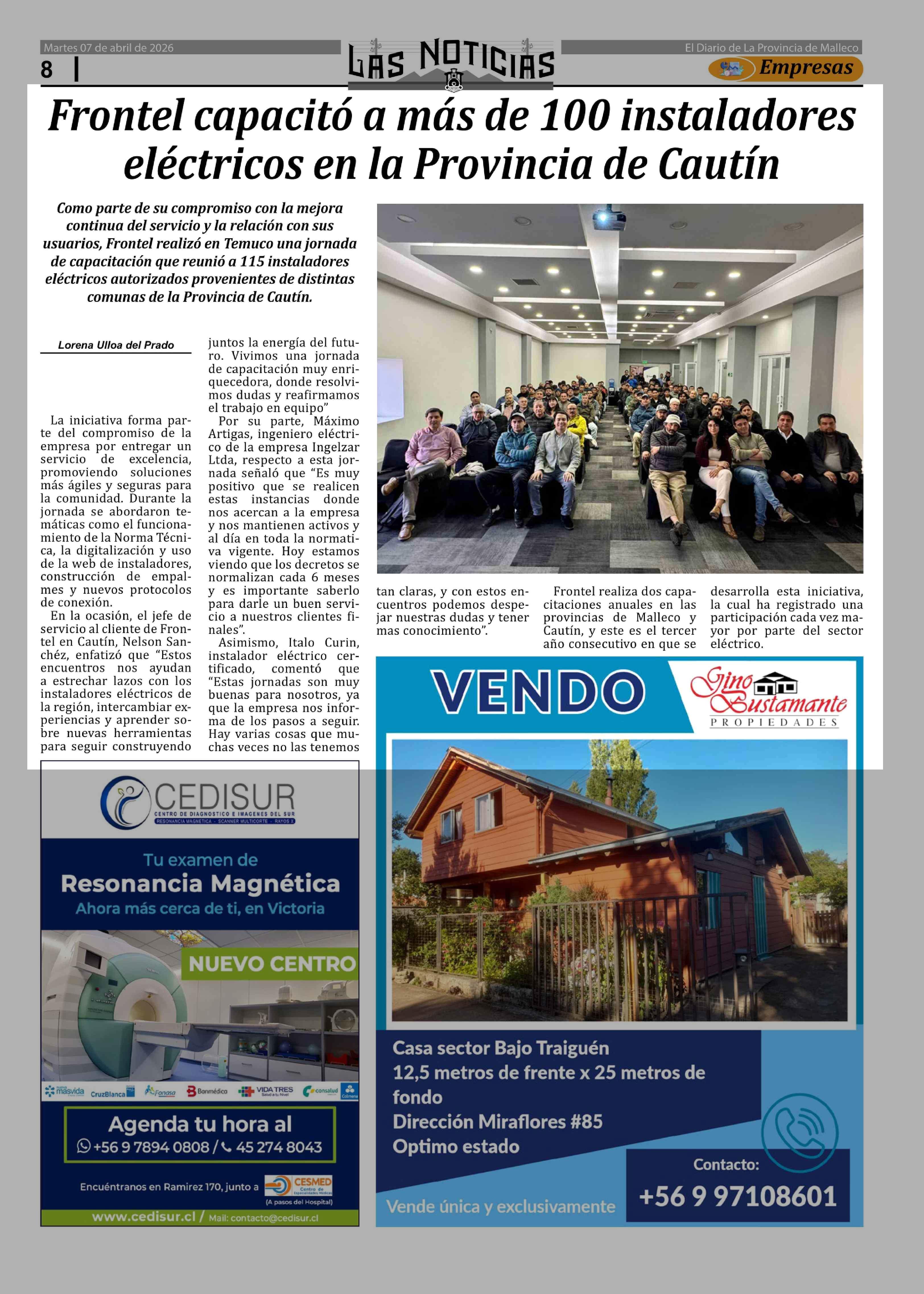 Fecha: 07-04-2026 Sector: Noticia general Región: Región de la Araucanía