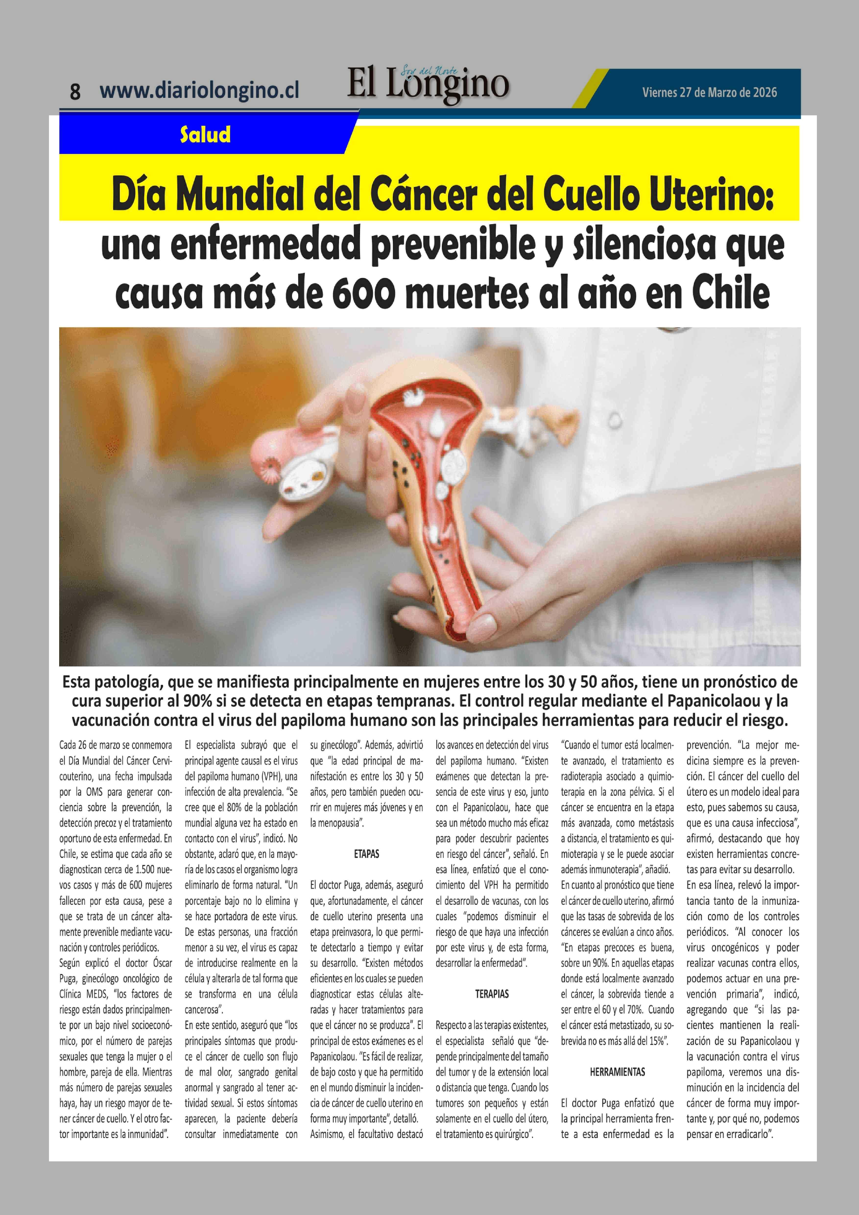 Título: Día Mundial del Cáncer del Cuello Uterino: una enfermedad prevenible y silenciosa que causa más de 600 muertes al año en Chile