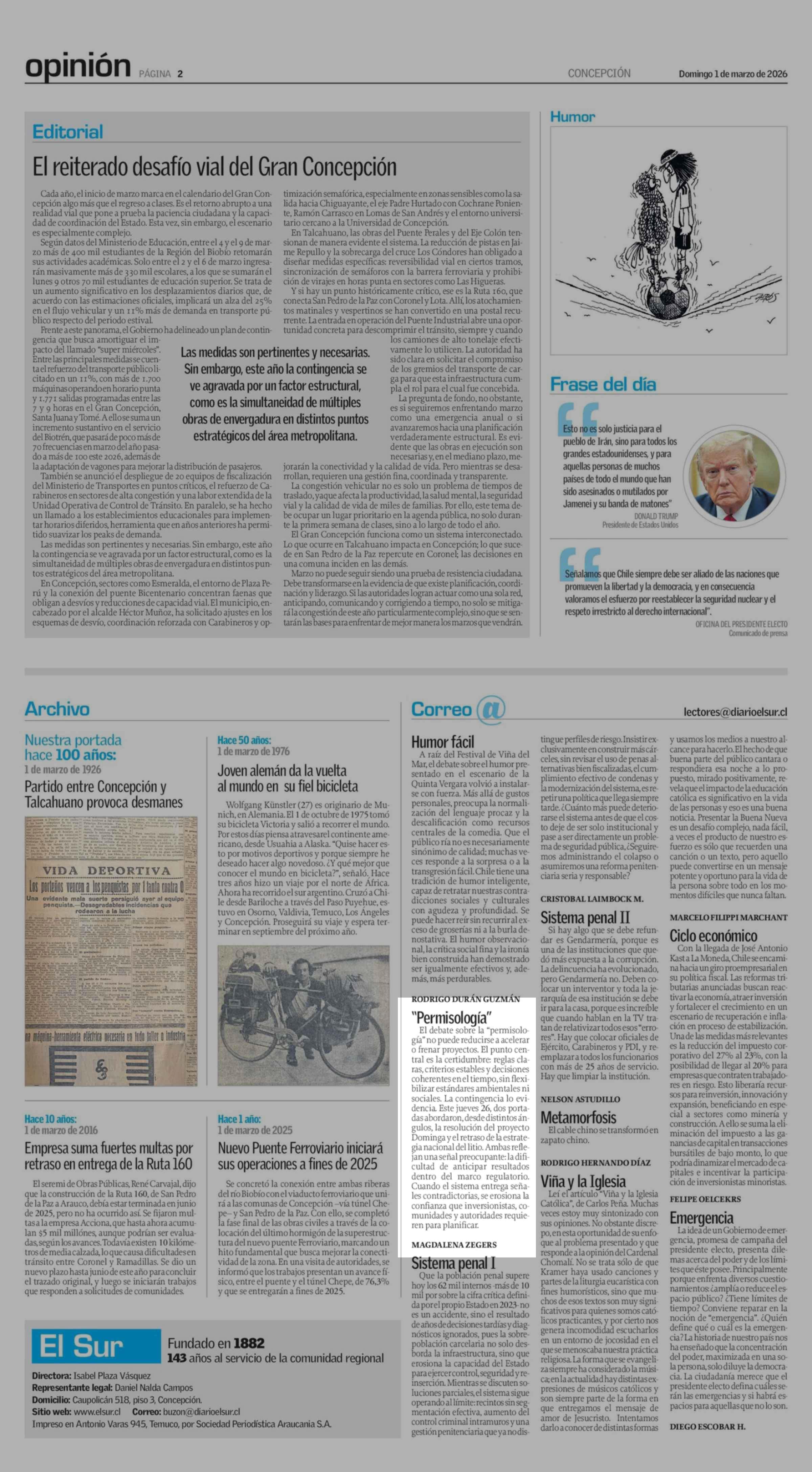 Cartas: "Permisología" 01-03-2026 El Sur |