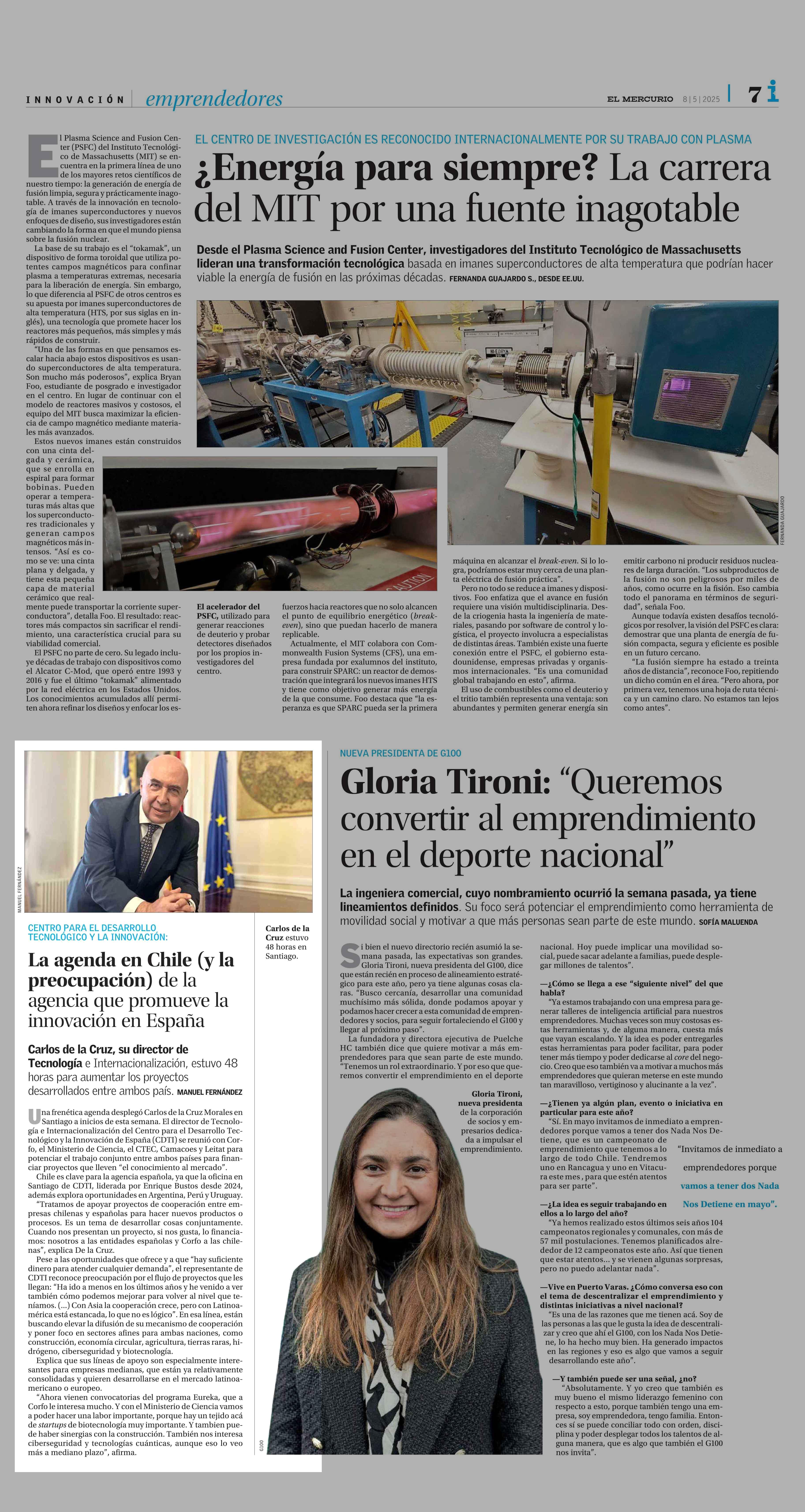 La agenda en Chile (y la preocupación) de la agencia que promueve la innovación en España 08-05-2025 El Mercurio |