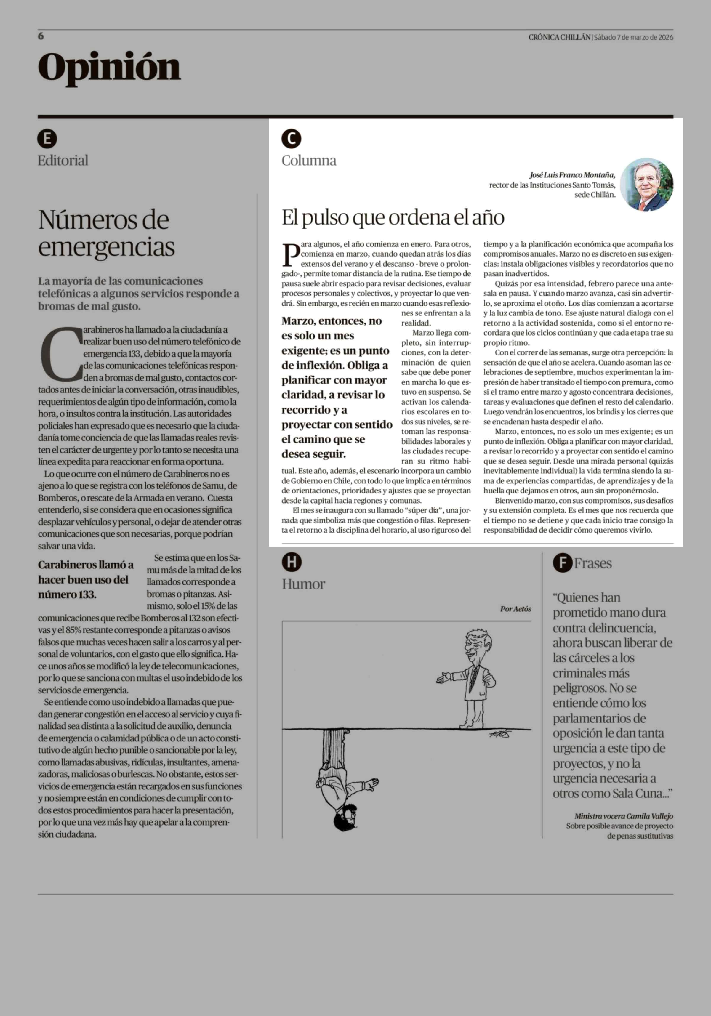 Fecha: 07-03-2026 Sector: Columnas de Opinión Región: Región del Ñuble