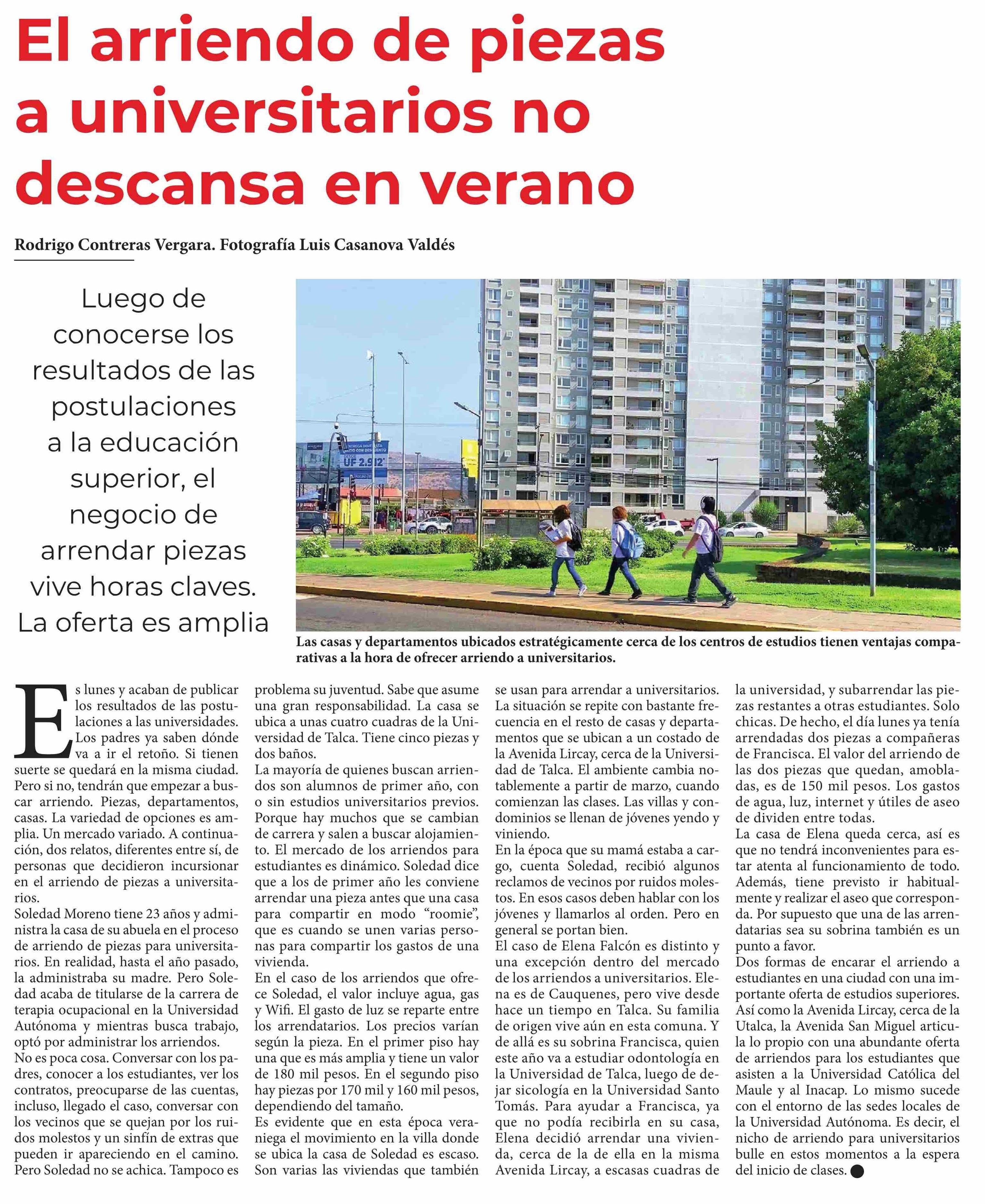 Título: El arriendo de piezas a universitarios no descansa en verano