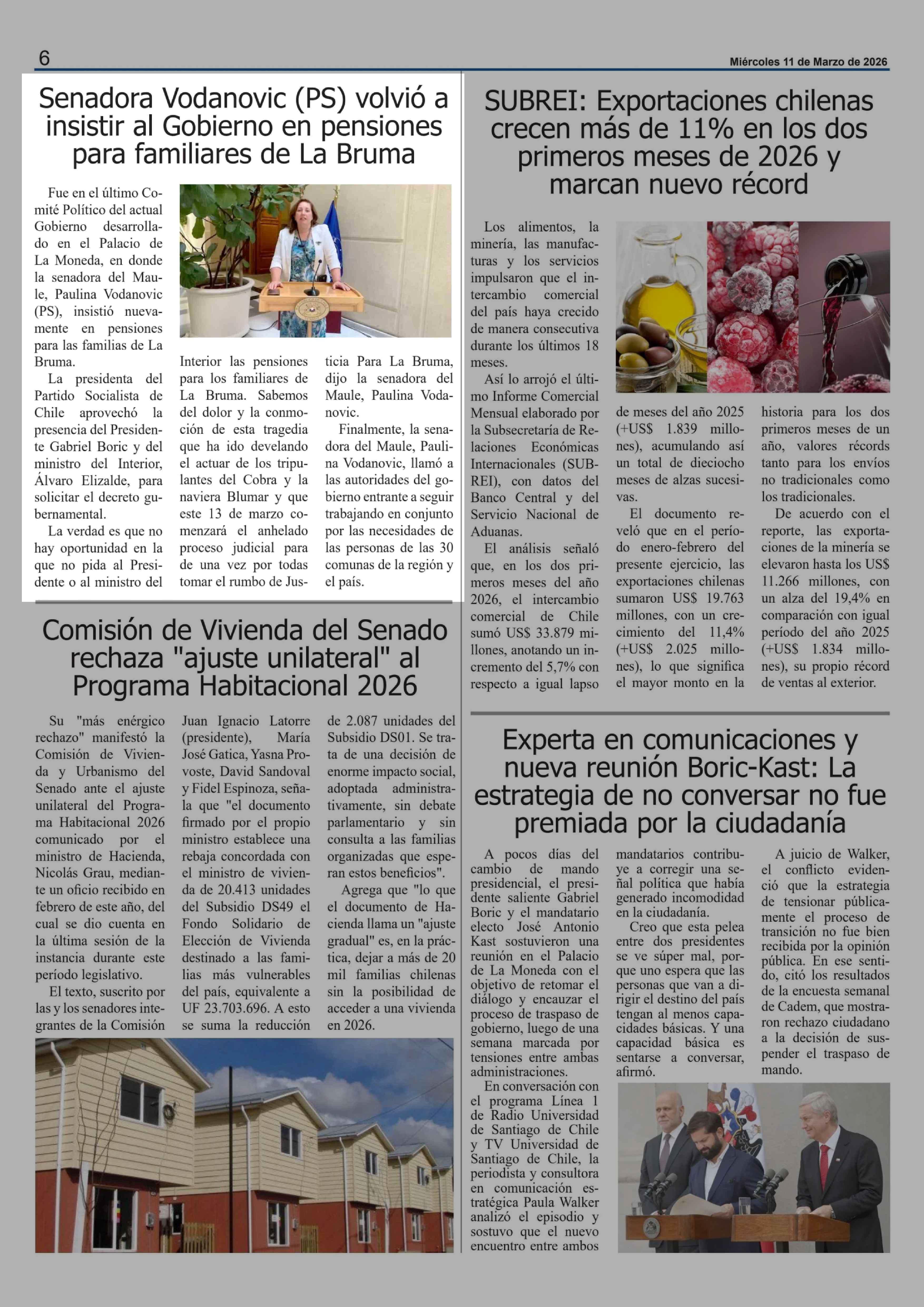 Senadora Vodanovic (PS) volvió a insistir al Gobierno en pensiones para familiares de La Bruma 11-03-2026 El Heraldo |