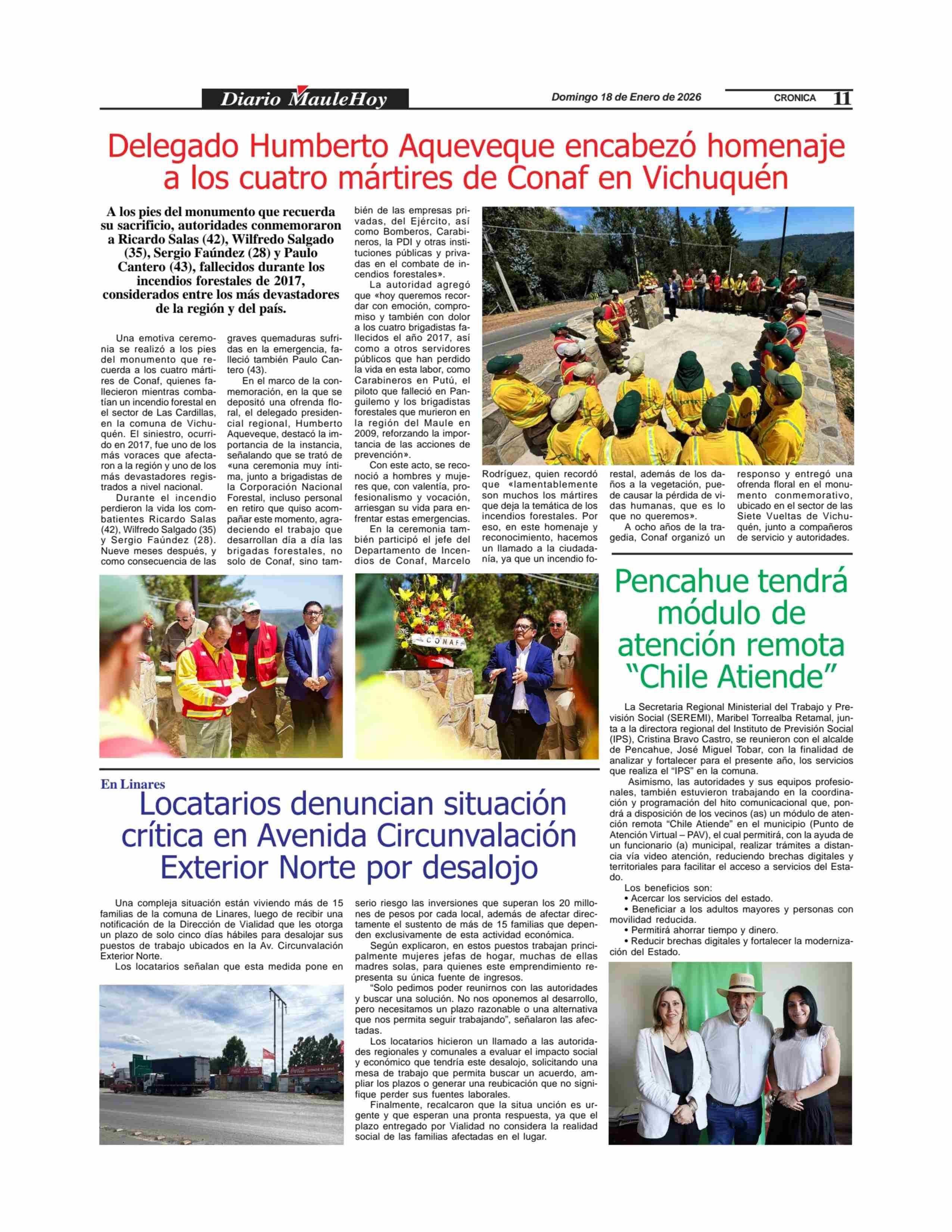 Fecha: 18-01-2026 Sector: Noticia general Región: Región del Maule