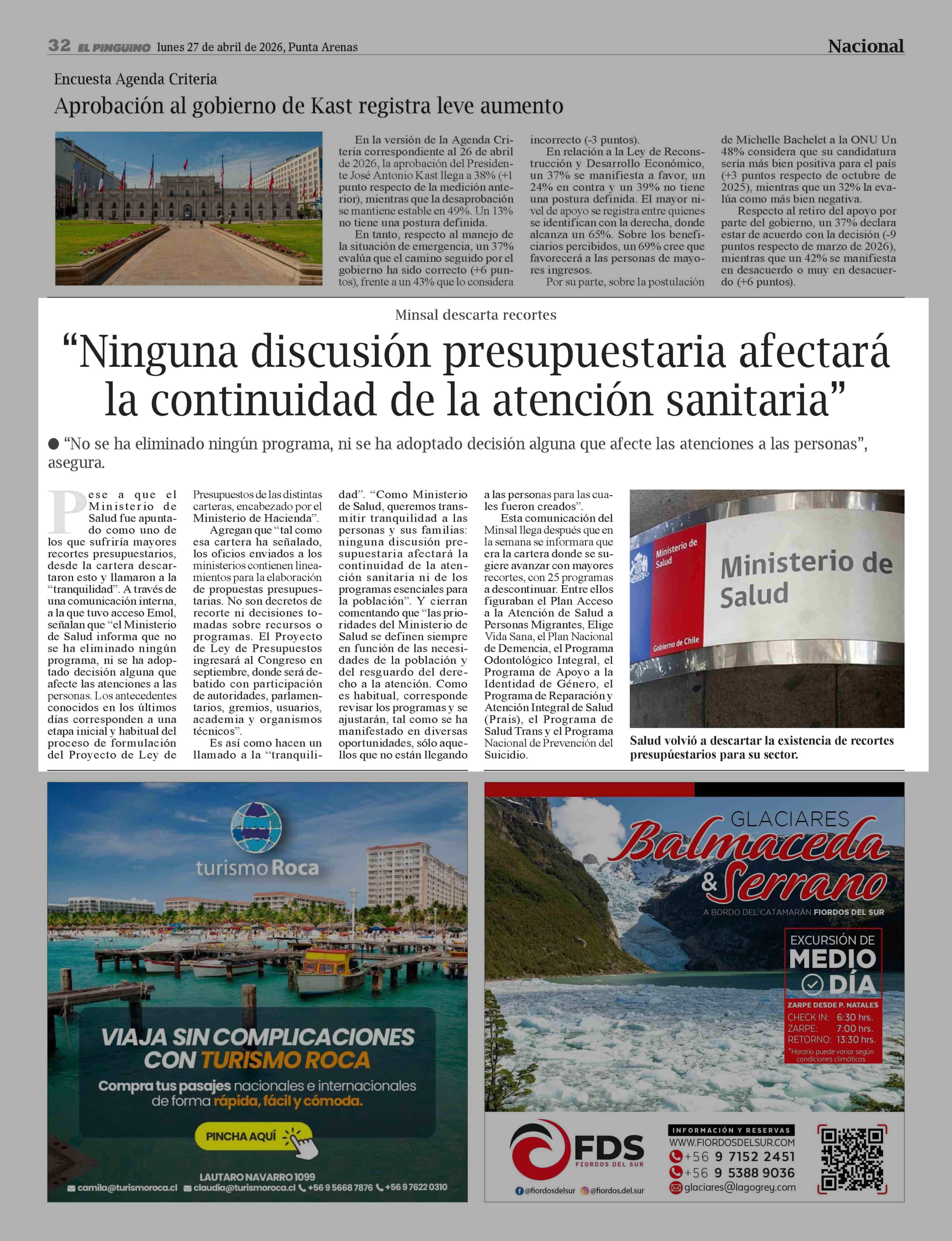 Fecha: 27-04-2026 Sector: Noticia general Región: Región de Magallanes y de la Antártica Chilena
