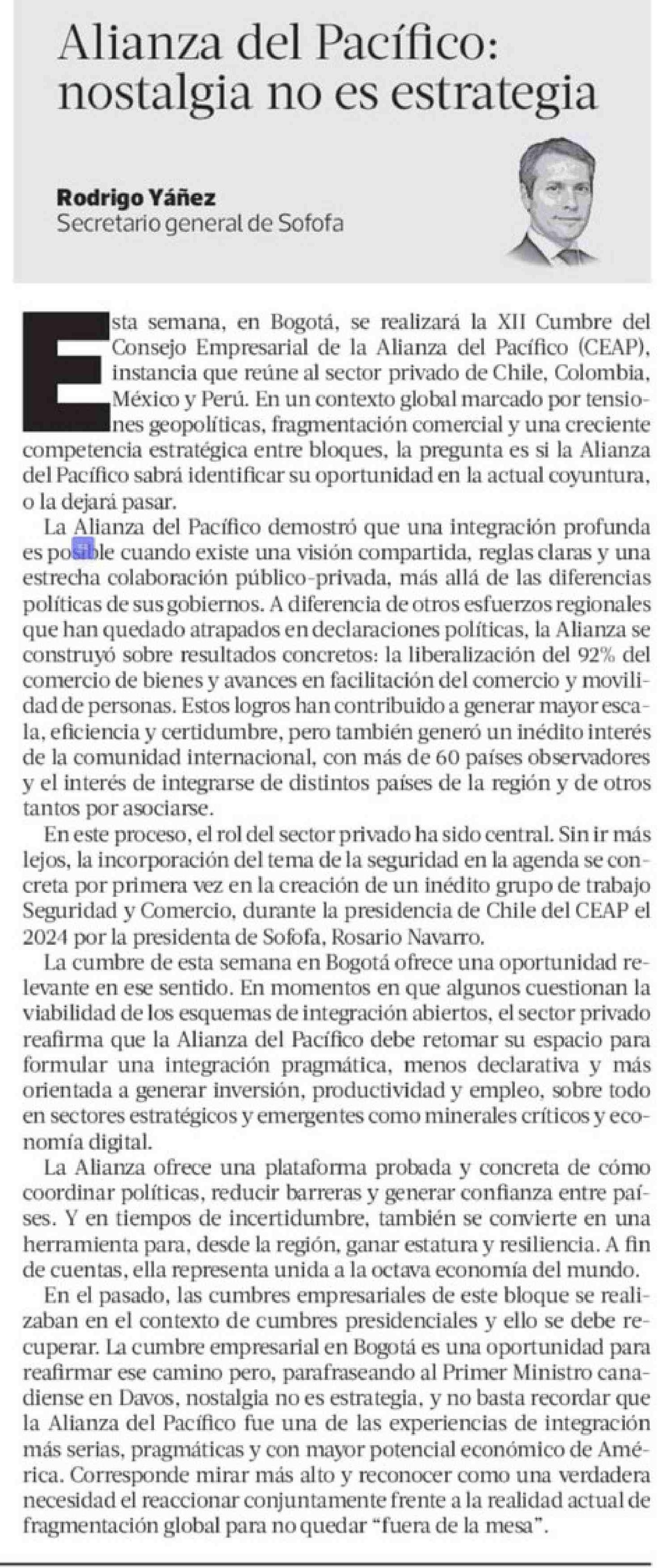 Título: Columnas de Opinión: Alianza del Pacífico: nostalgia no es estrategia