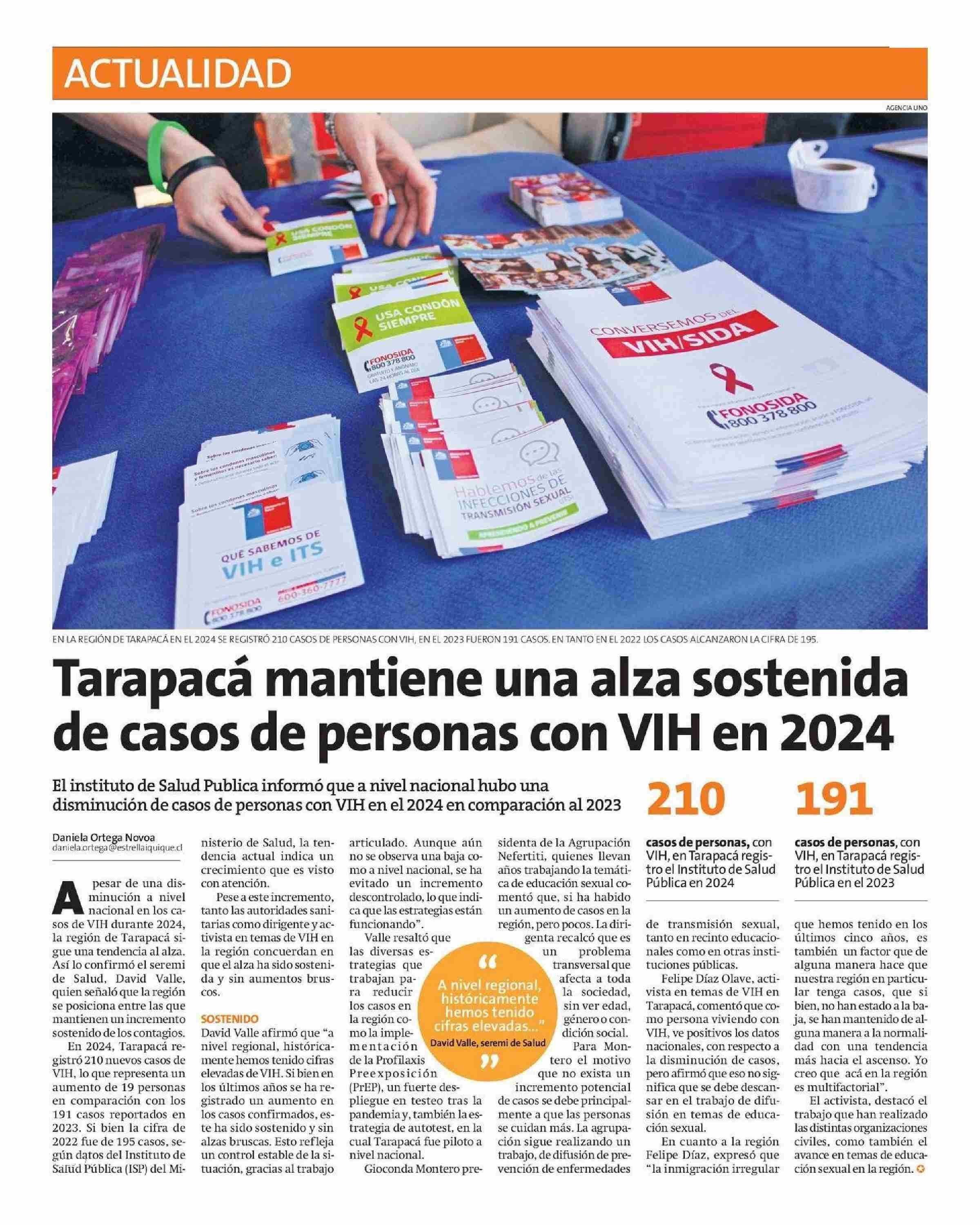 Tarapacá mantiene una alza sostenida de casos de personas con VIH en 2024 04-06-2025 La Estrella de Iquique |