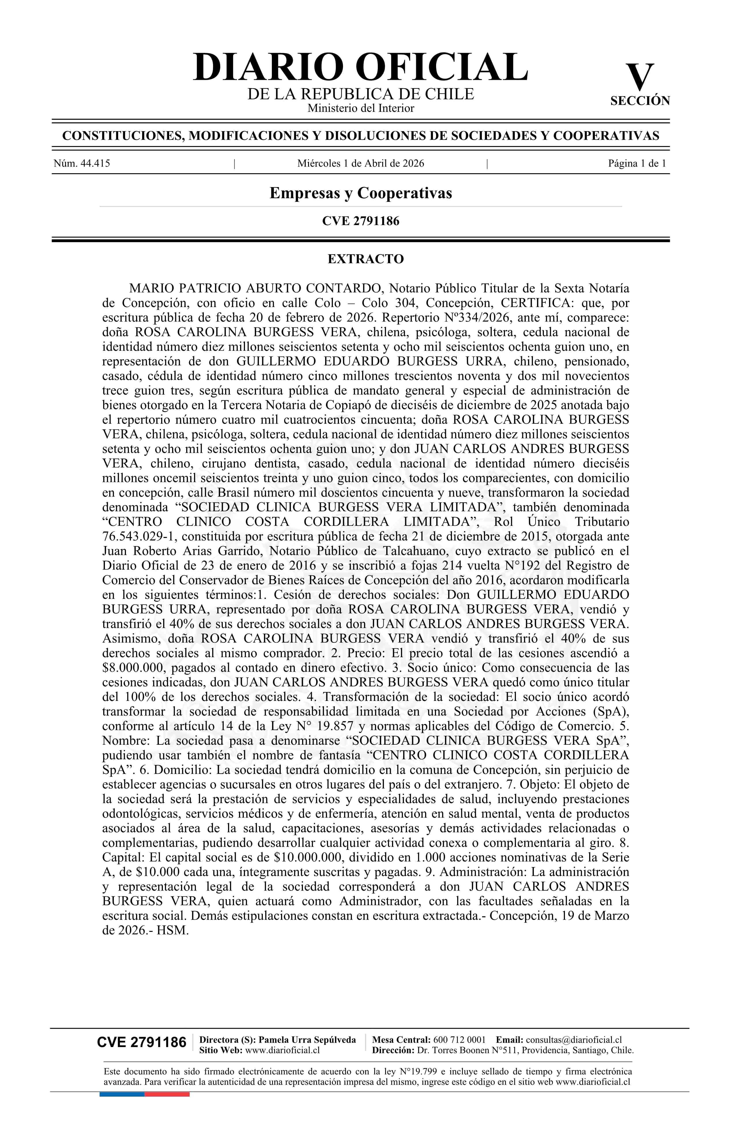 Título: SOCIEDAD CLINICA BURGESS VERA LIMITADA 76.543.029-1*