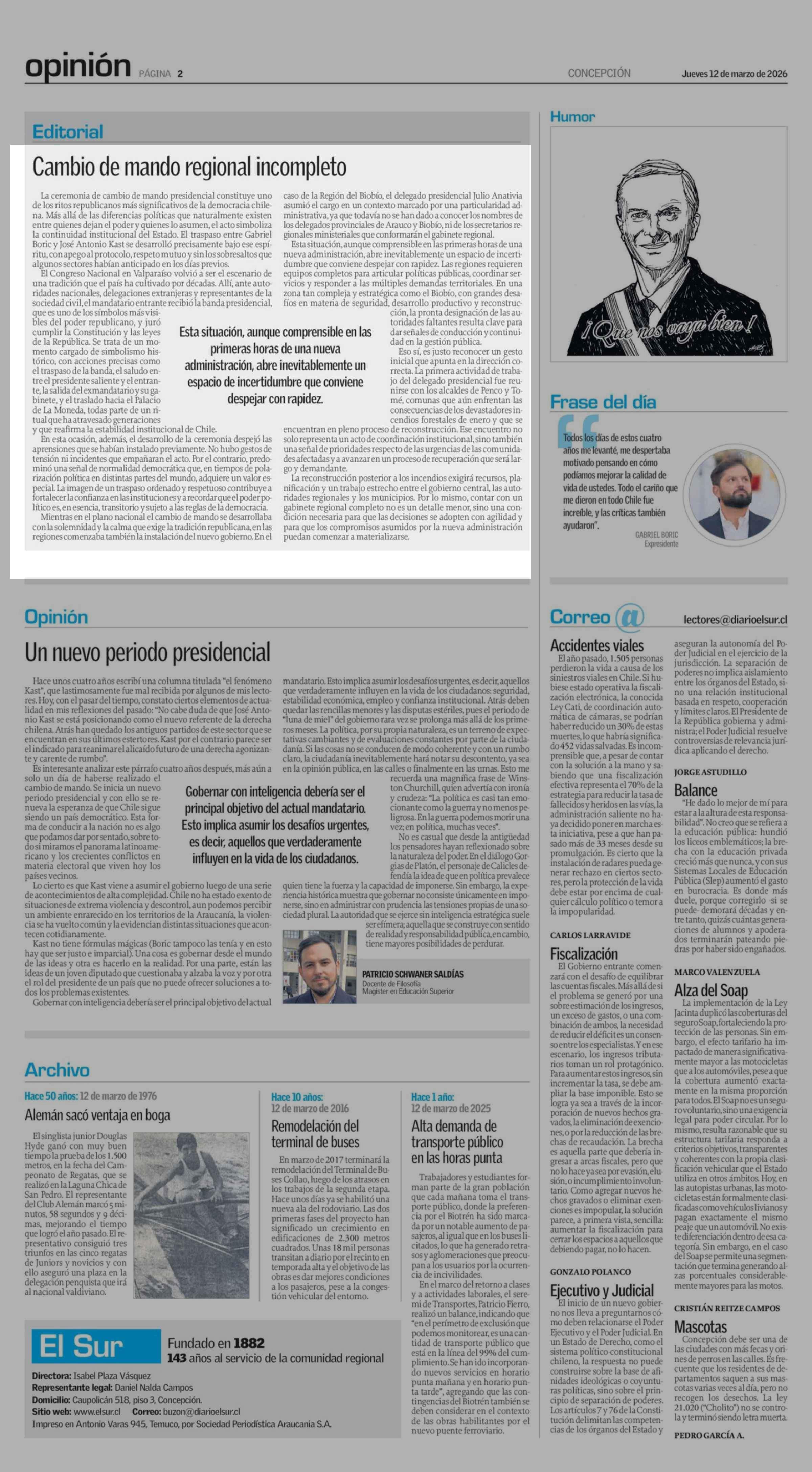 Fecha: 12-03-2026 Sector: Columnas de Opinión Región: Región del Bío-Bío
