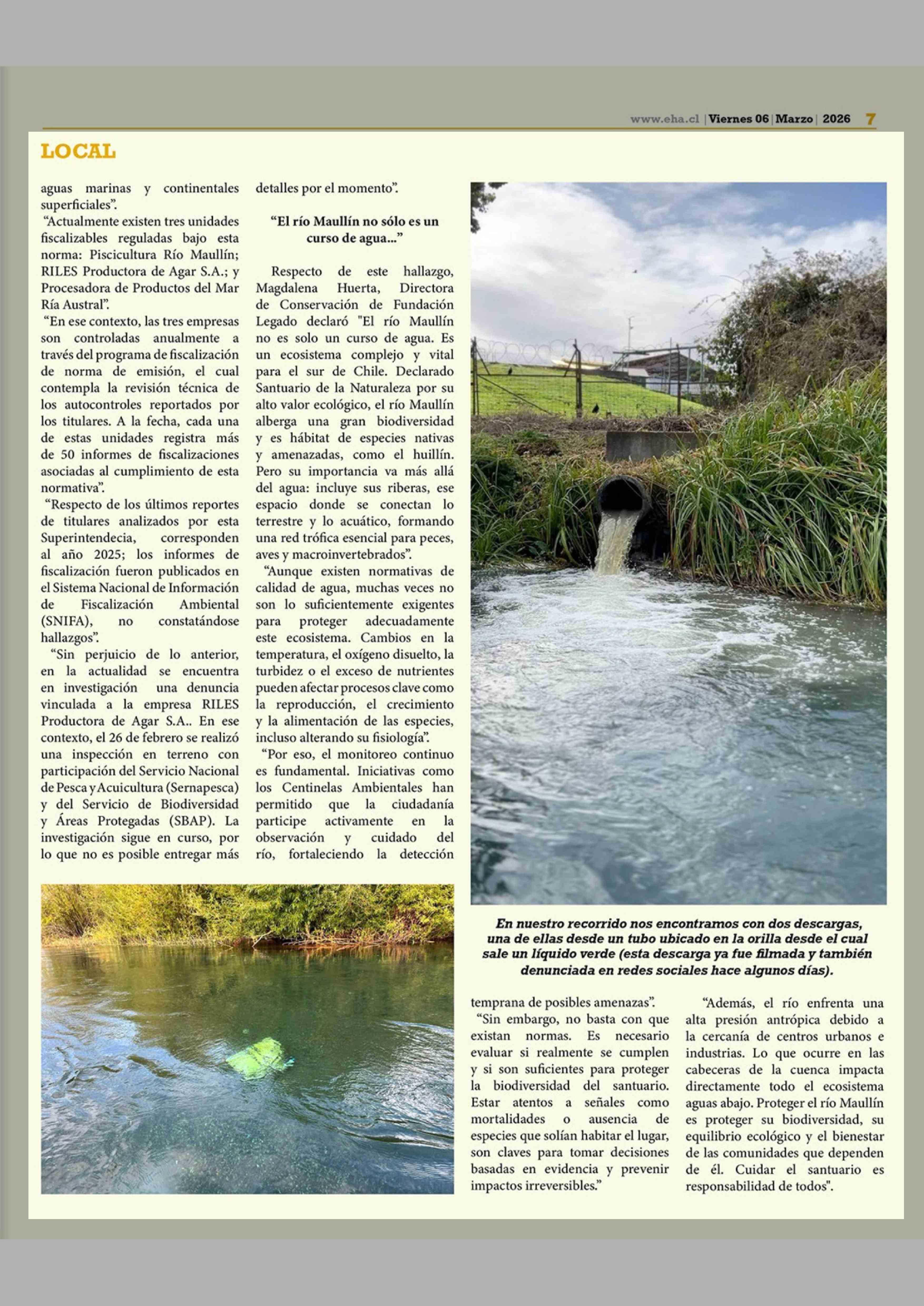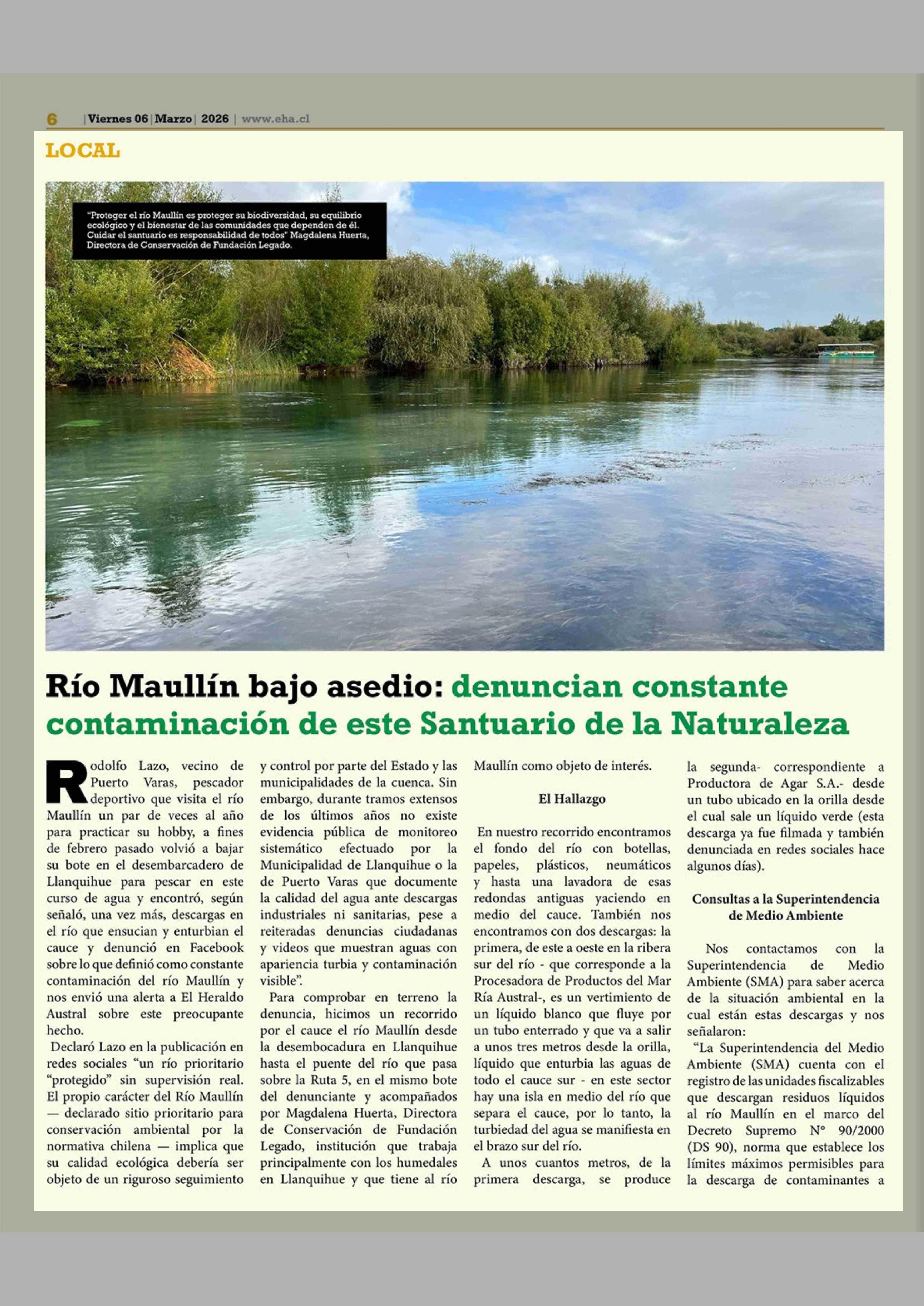 Río Maullín bajo asedio: denuncian constante contaminación de este Santuario de la Naturaleza 06-03-2026 El Heraldo Austral |