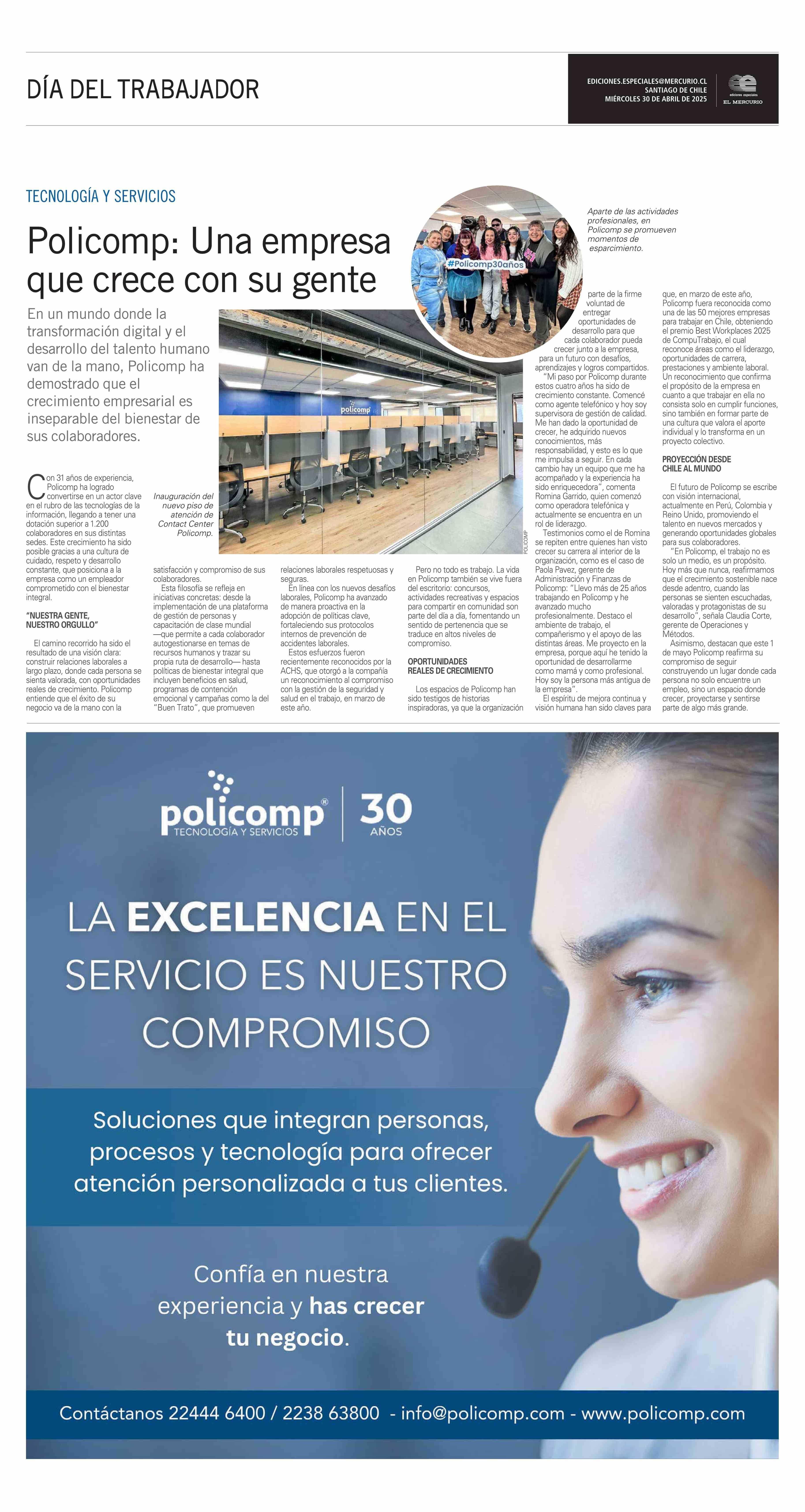 Policomp: Una empresa que crece con su gente 30-04-2025 El Mercurio |