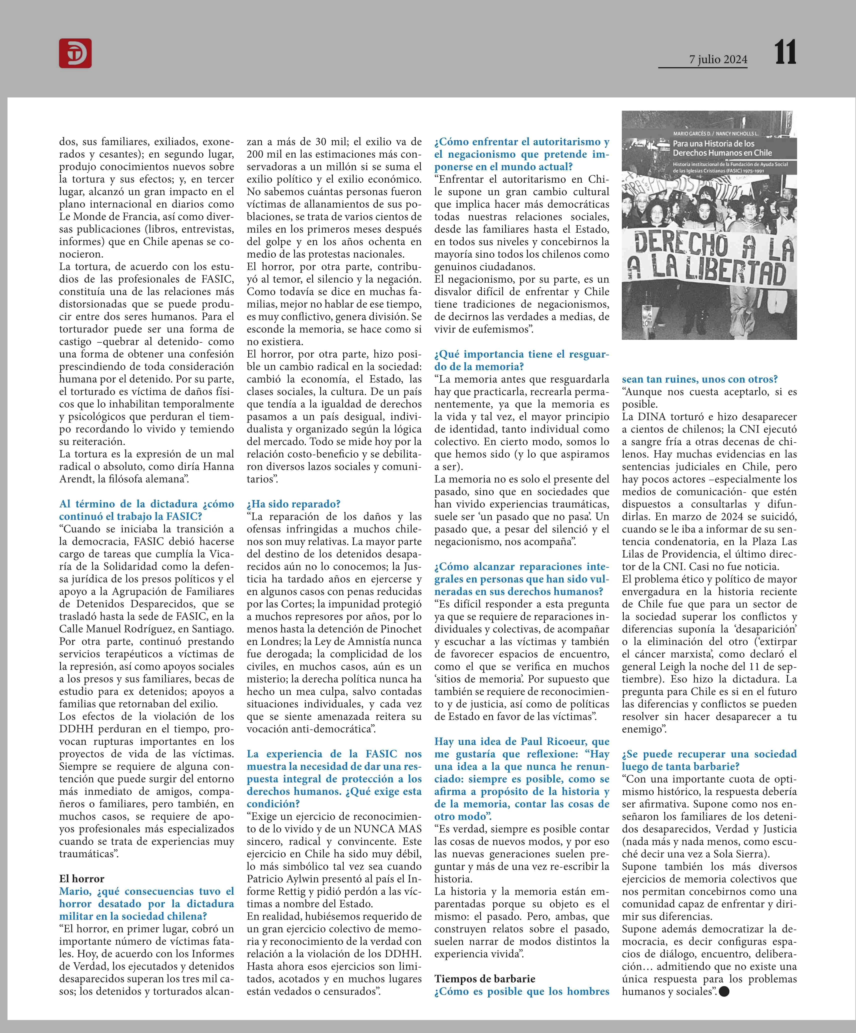 “Enfrentar el autoritarismo en Chile supone un gran cambio cultural” 08-07-2024 Diario Talca |
