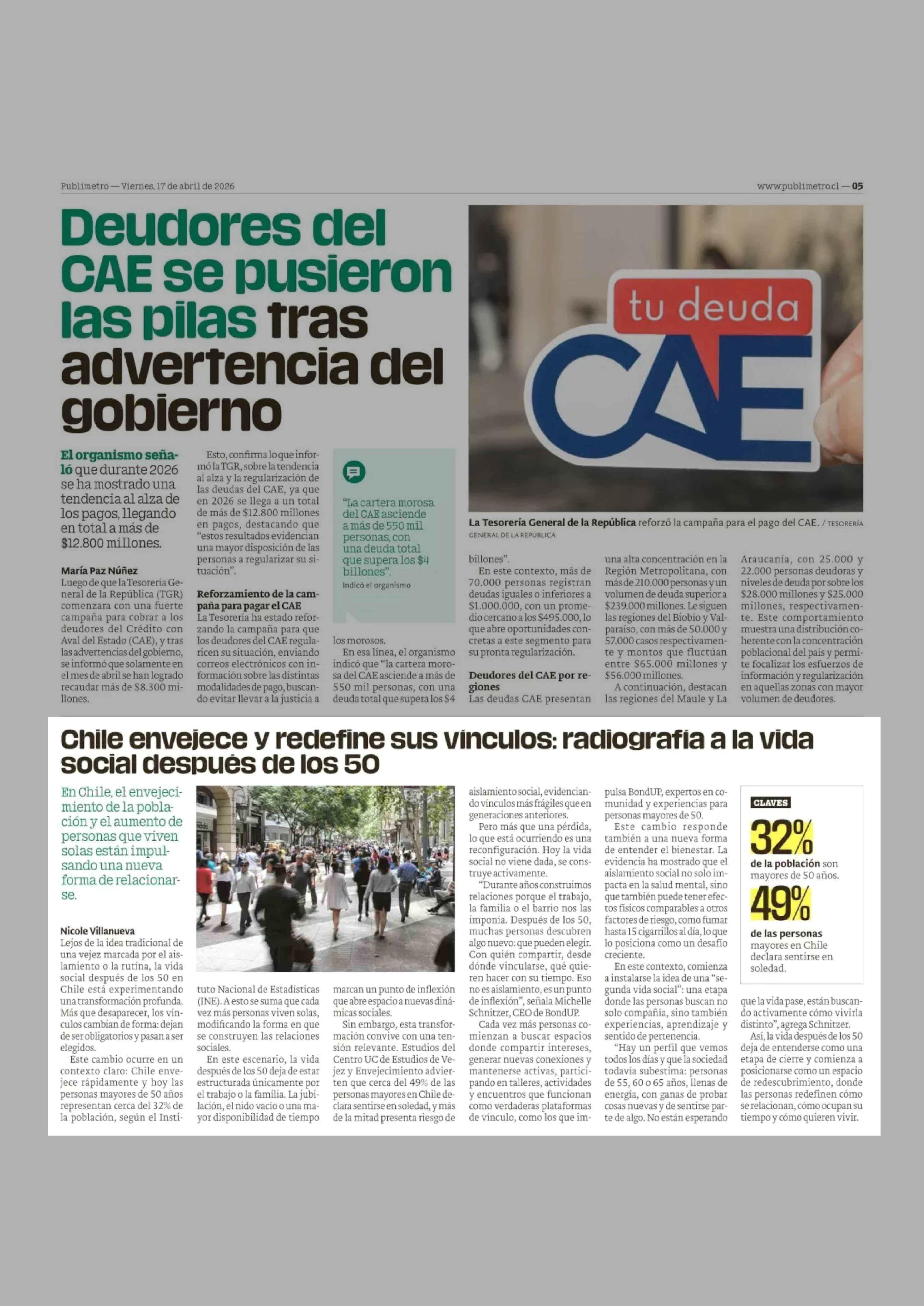 Título: Chile envejece y redefine sus vinculos: radiografia a la vida social despues de los 50