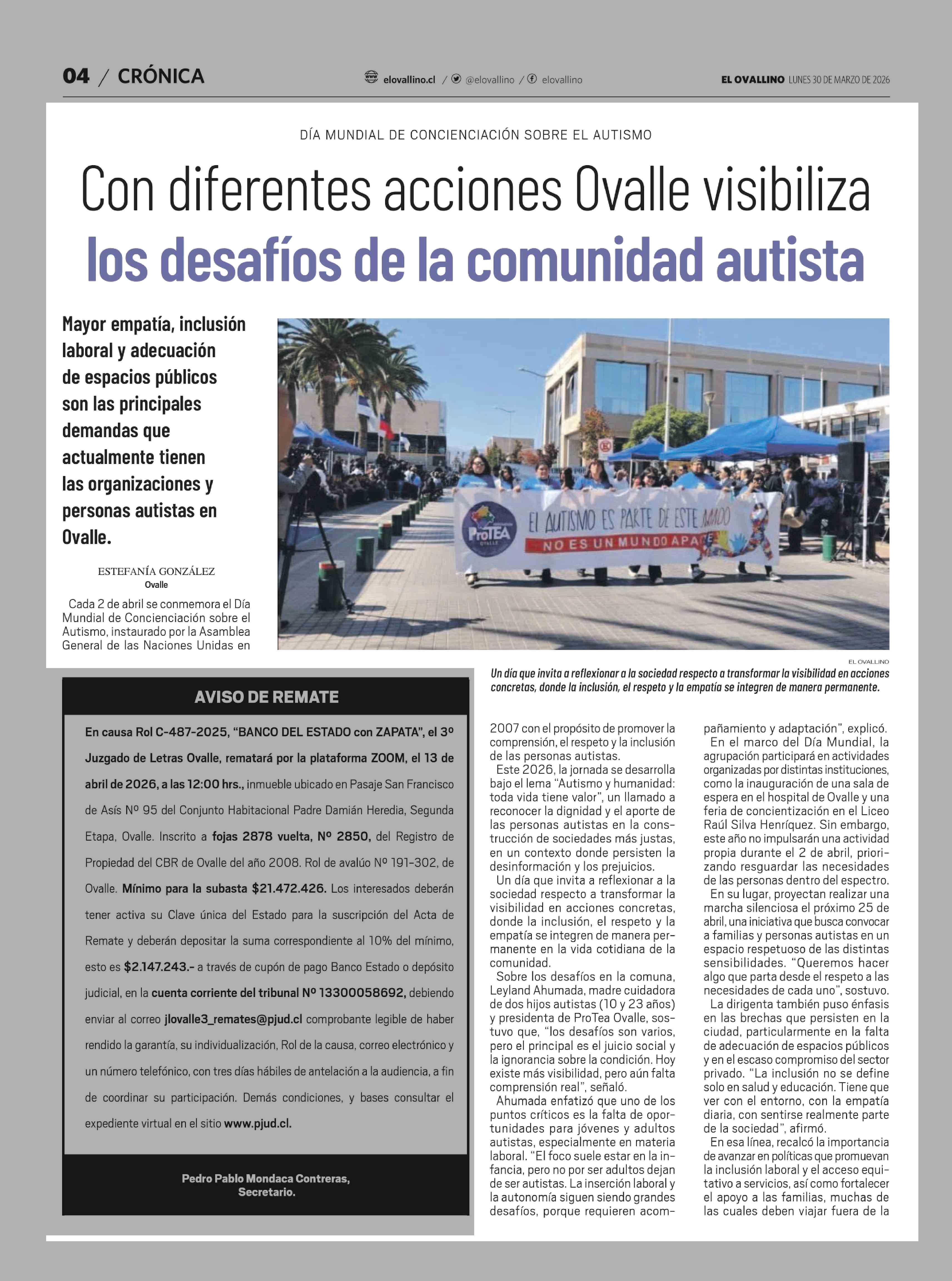Título: Con diferentes acciones Ovalle visibiliza los desafios de la comunidad autista