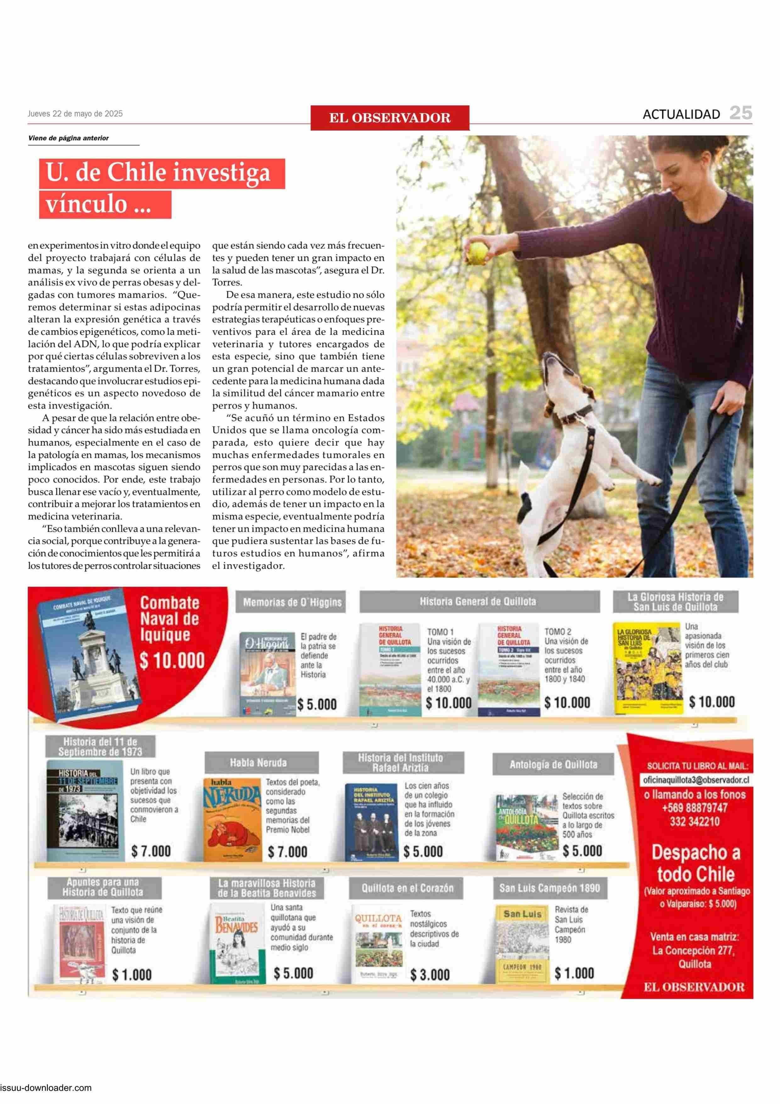 U. de Chile investi entre obesidad y cancer mamario en perros 22-05-2025 El Observador Vespertino |